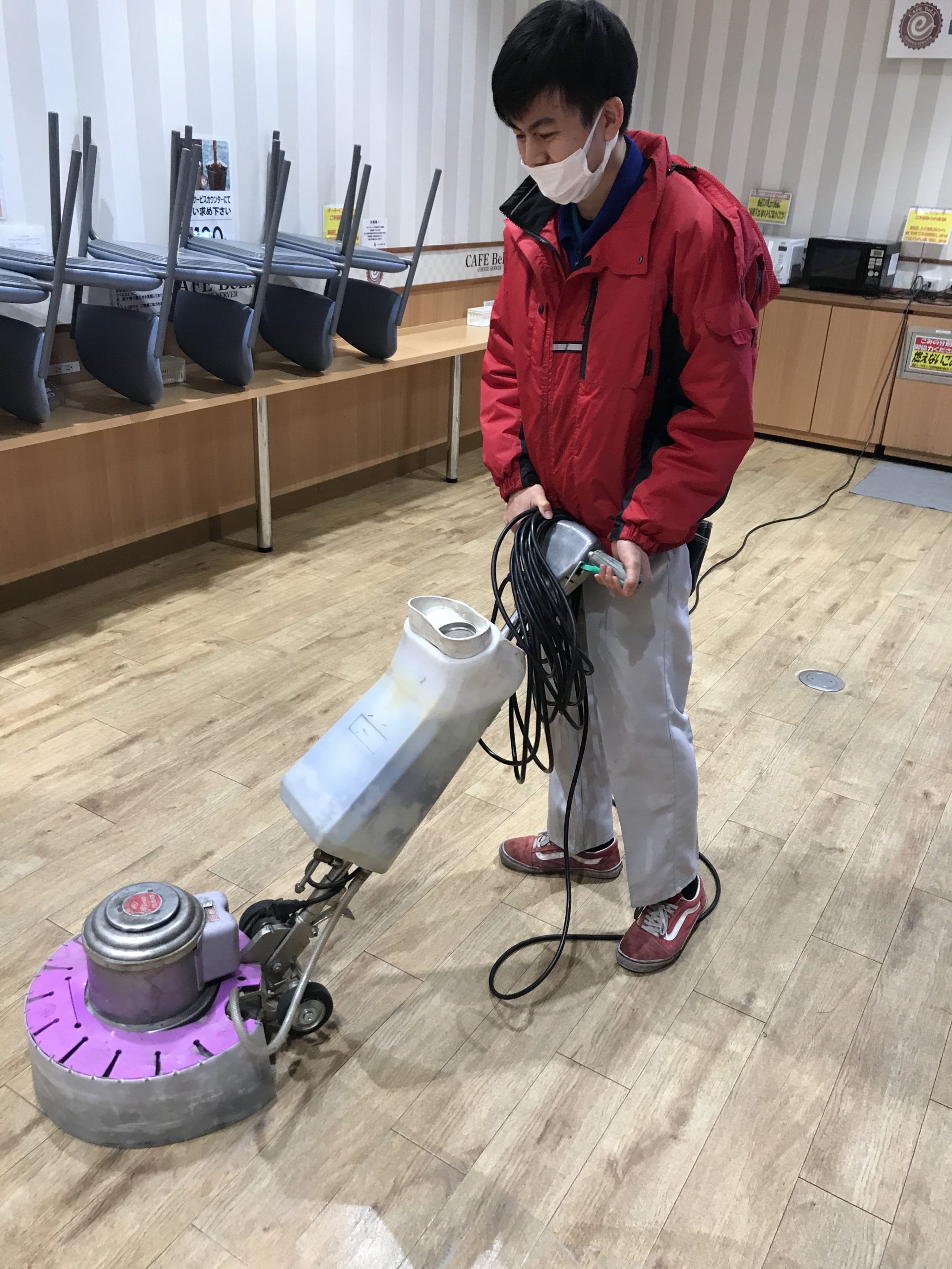 入社して4ヶ月が経ち気付いたらポリッシャーもコードを巻きながら回せるようになってました!
