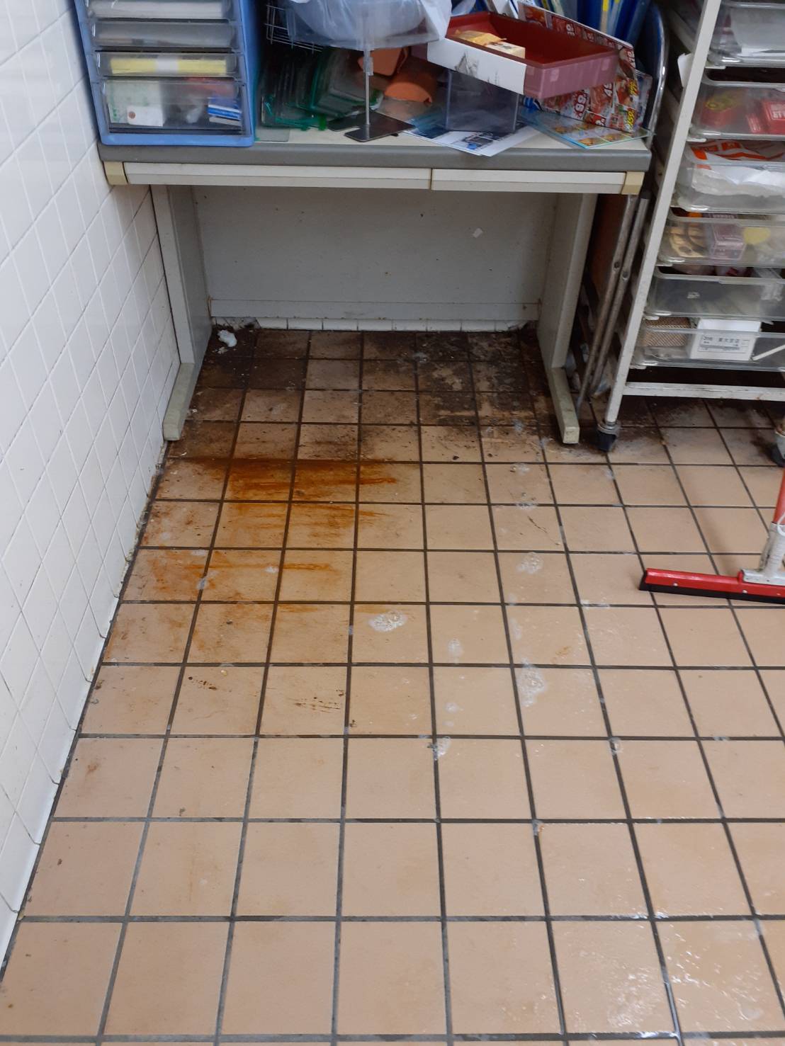 厨房の中の床で油まみれでした!