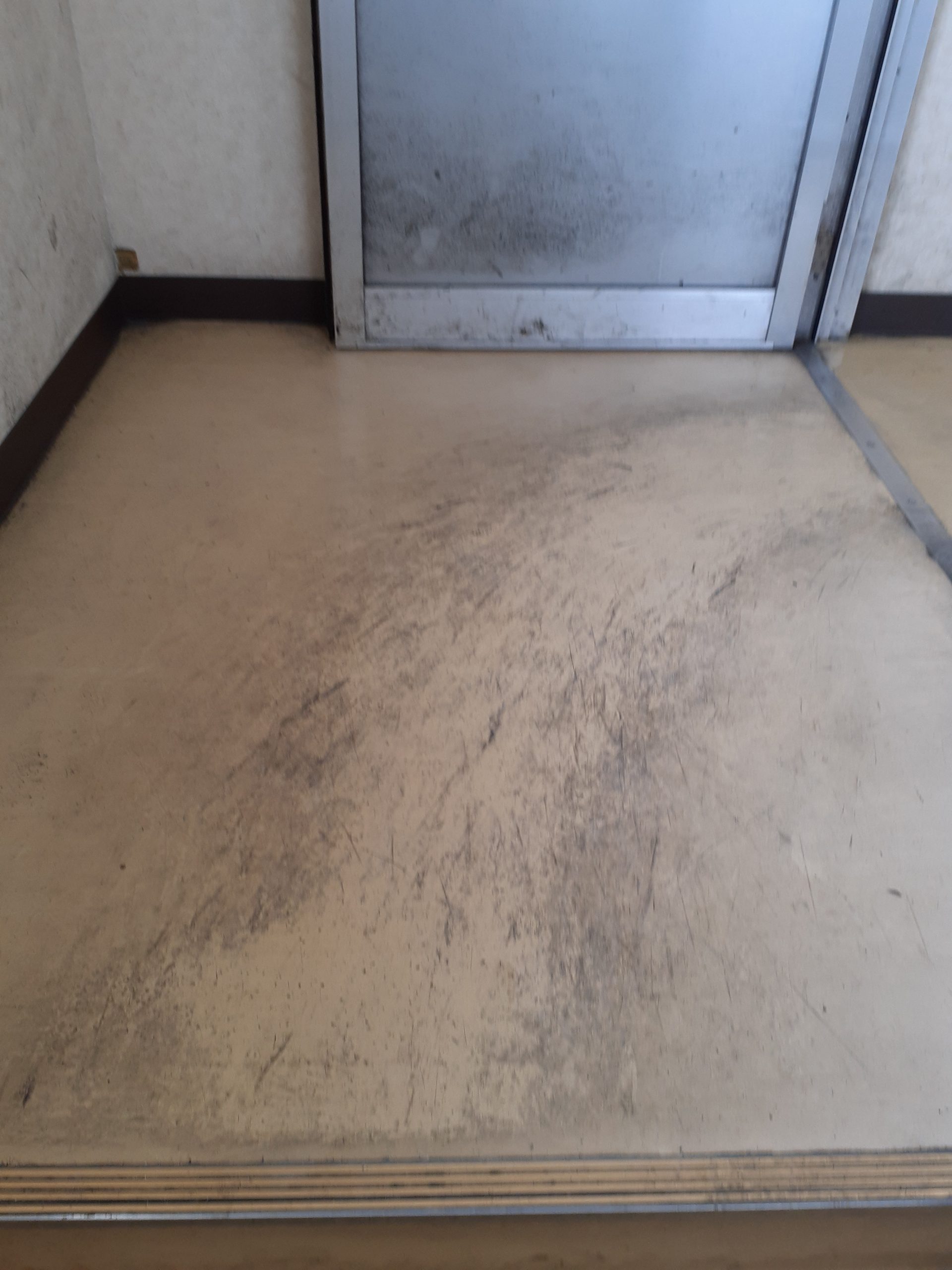 床面洗浄の洗浄をしてきました!落ちづらい黒ずみも汚れの種類によってはこんなにキレイにすることができます!