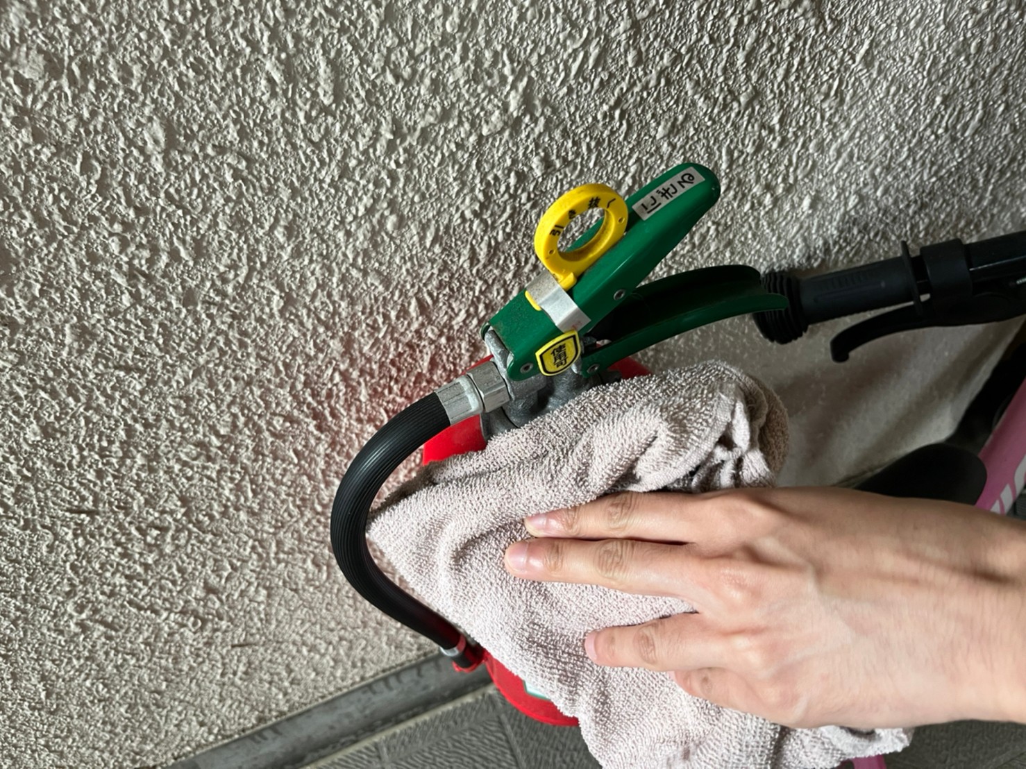 1件1件は短い時間で、定期清掃のような特別な道具を使っている訳では無いですが、消化器などの何時もはそこまで目がいかない場所でもキッチリ清掃しています!