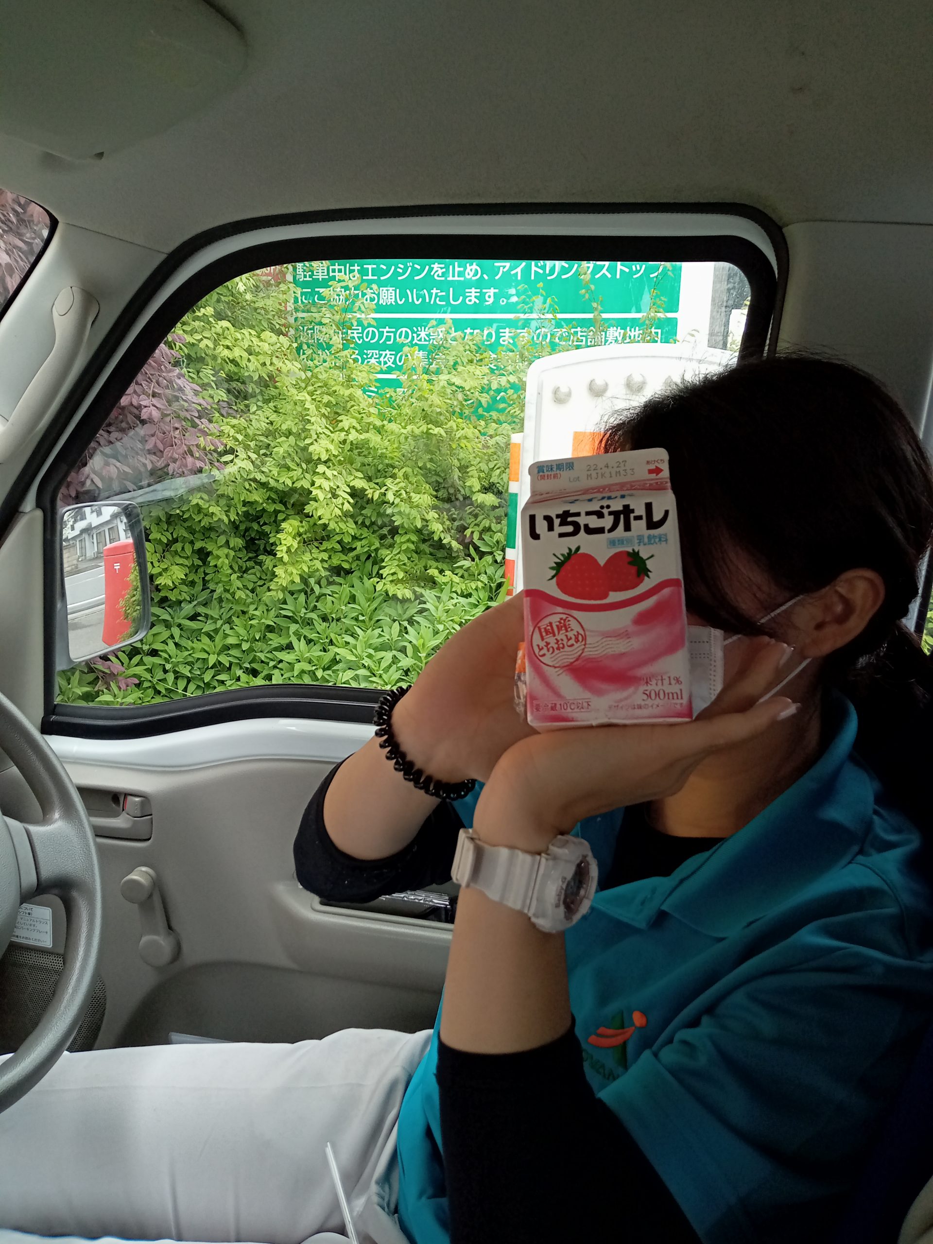 コンビニでお昼休憩を取ってます!下の写真は上司のヤンさんです。見た目は怖いですが、面倒見のある頼れる上司です。休憩のときは気さくに話しかけてくださり、色々勉強させてもらってます!