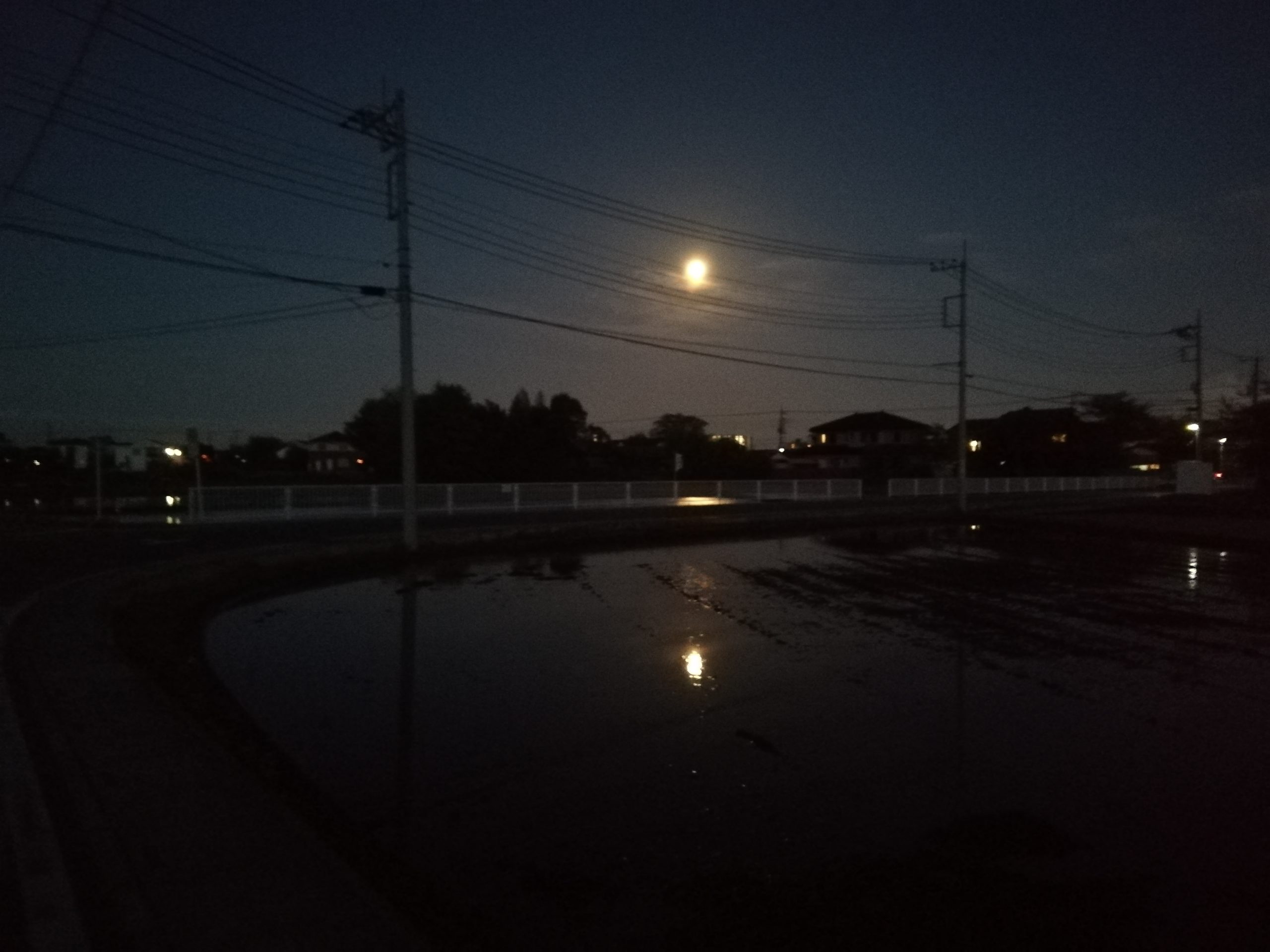 他にも、昨日降った雨の水溜まりに月が反射している写真も撮れました!