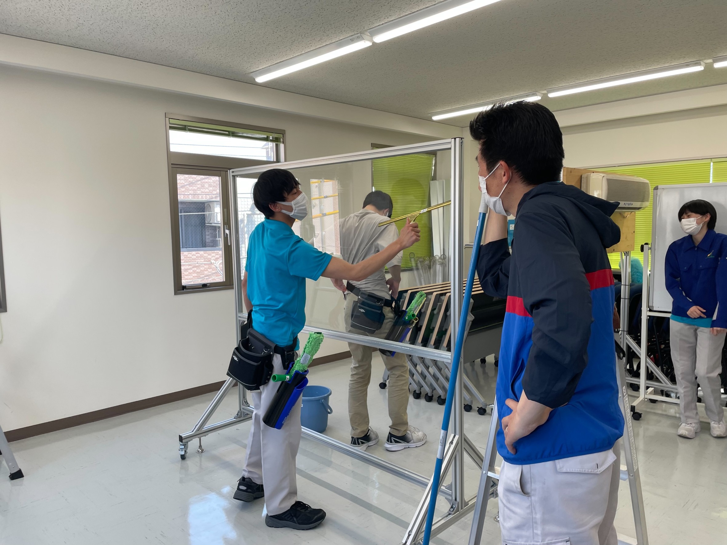 本日は研修でした。ガラス清掃、高所作業など教えていただきました!