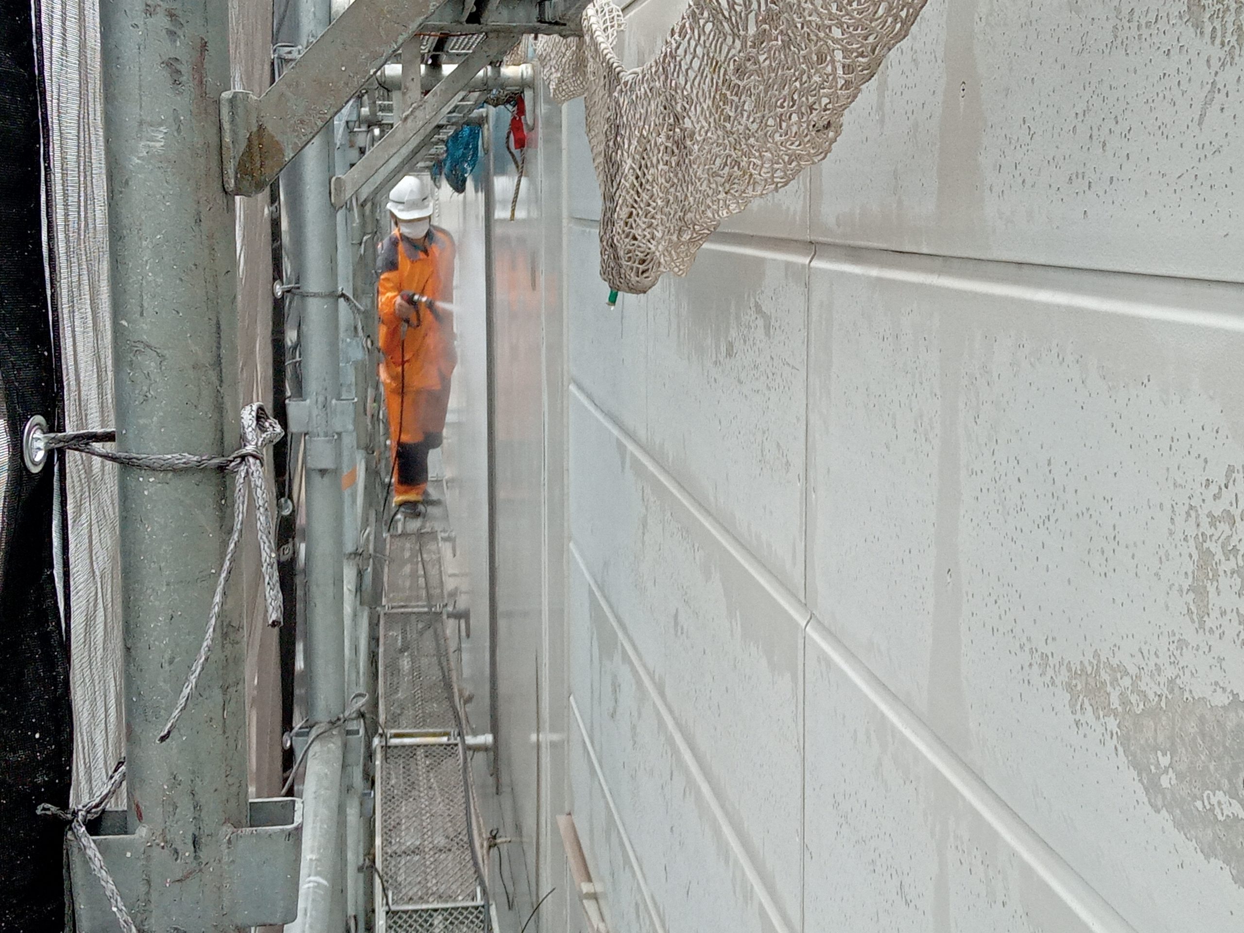 先日、初めて外壁清掃の現場に行きました!思っていたよりも足場が狭く、何度も頭をぶつけました。上り下りが多くとても大変でしたが、楽しかったです!
