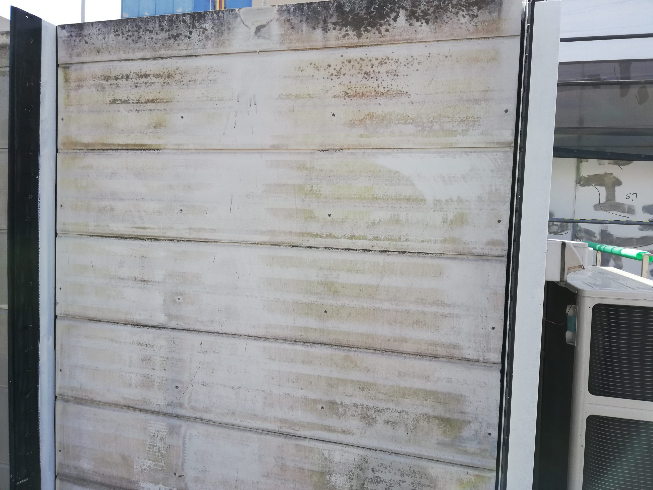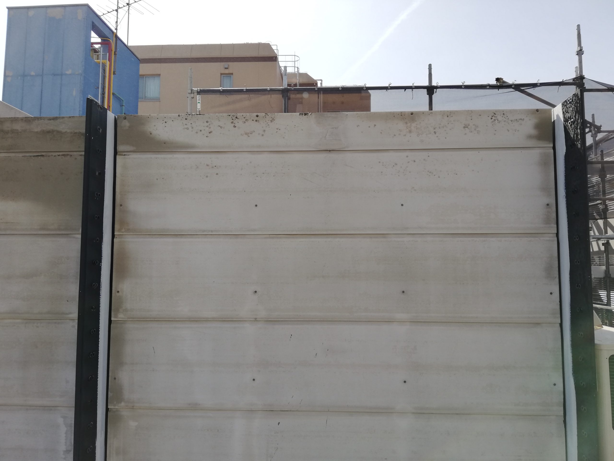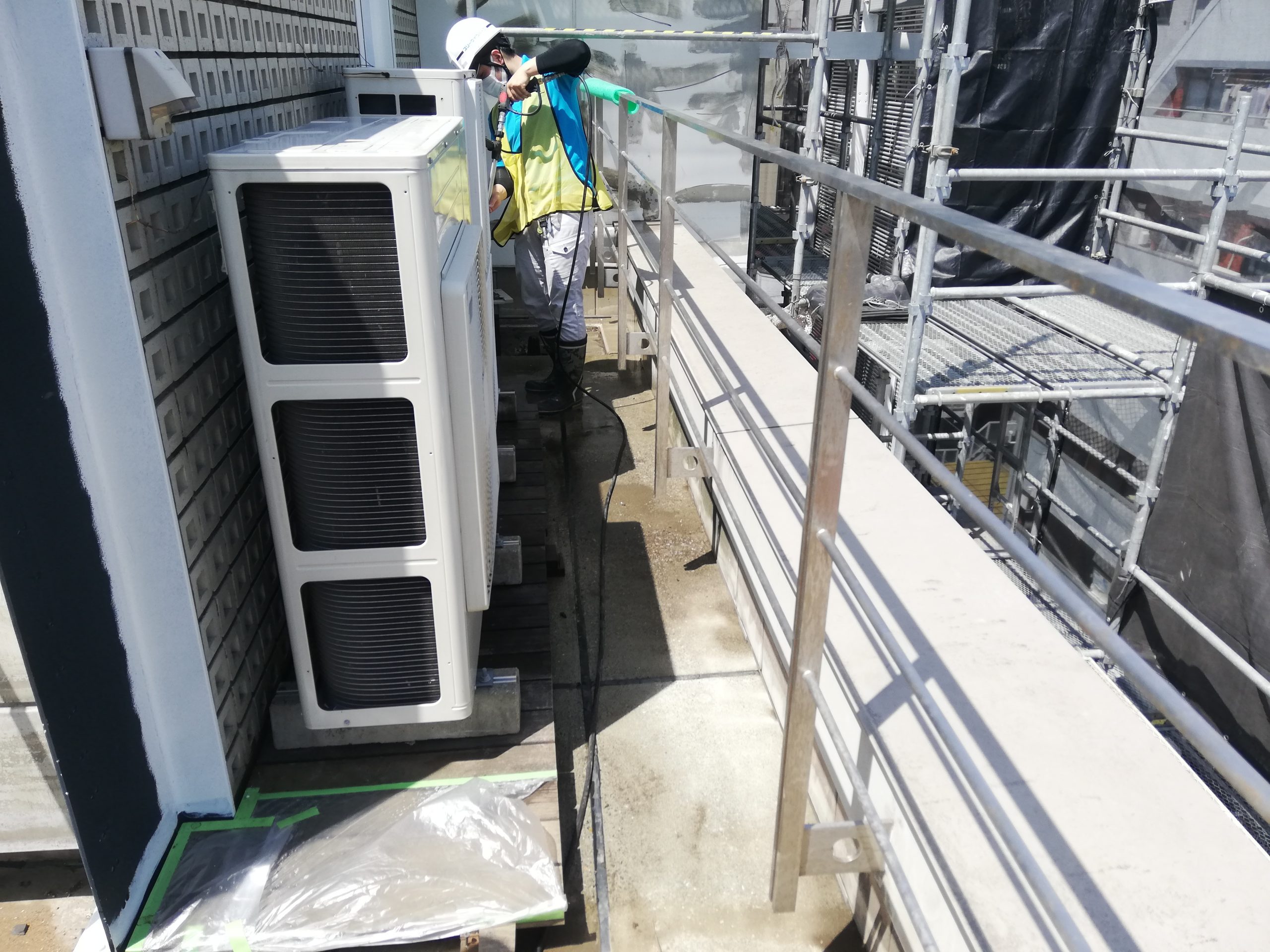 ビルの屋上、外壁を清掃するのが今回の作業内容で、マウンテンチームのジオンさんが屋上を高圧洗浄で汚れを落としていました!