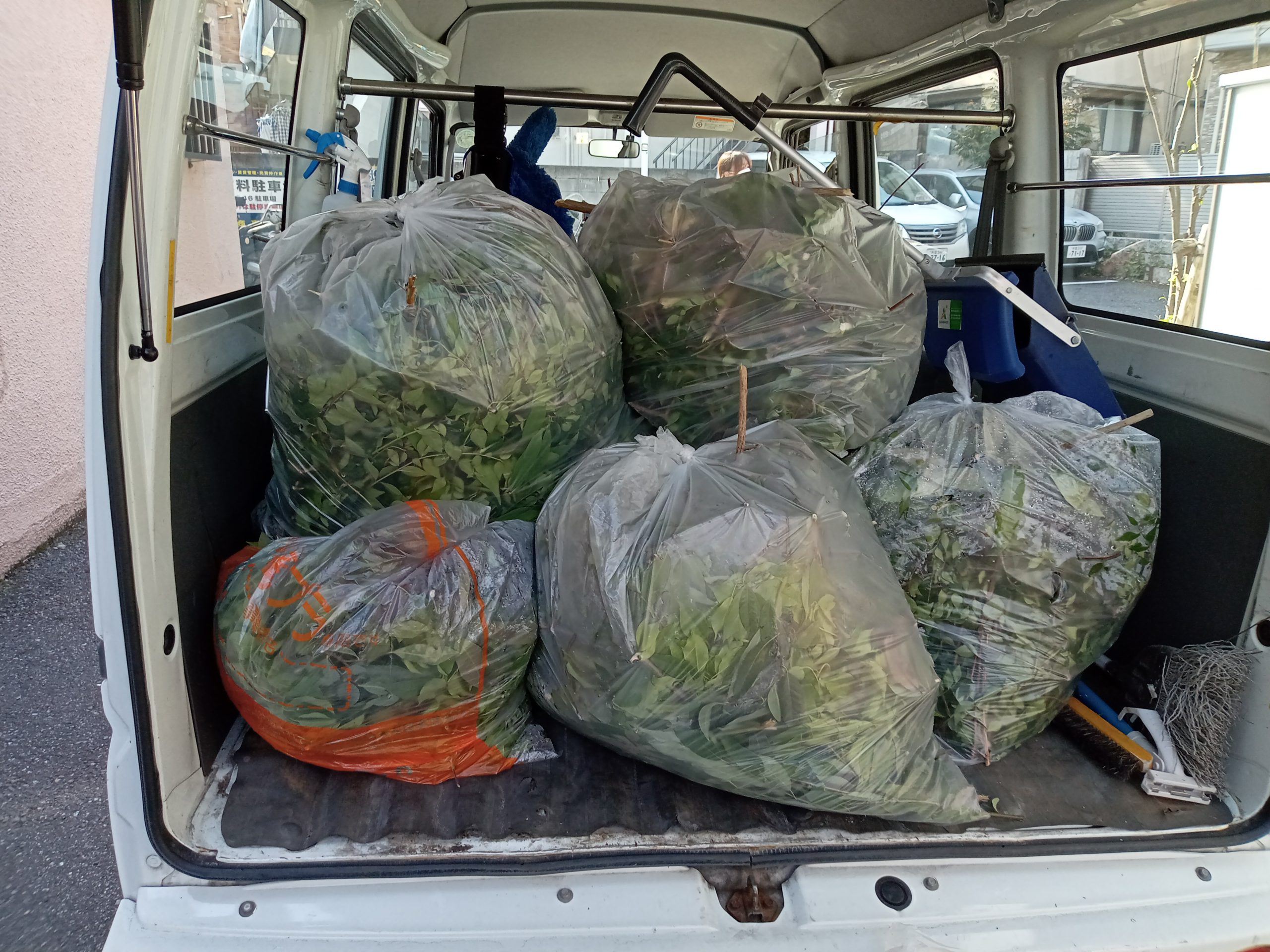 先日、植栽剪定の現場にいってきました!初めての植栽剪定でゴミ袋11袋分とれました!この写真の他にもキャラバンにたくさん詰め込みました!