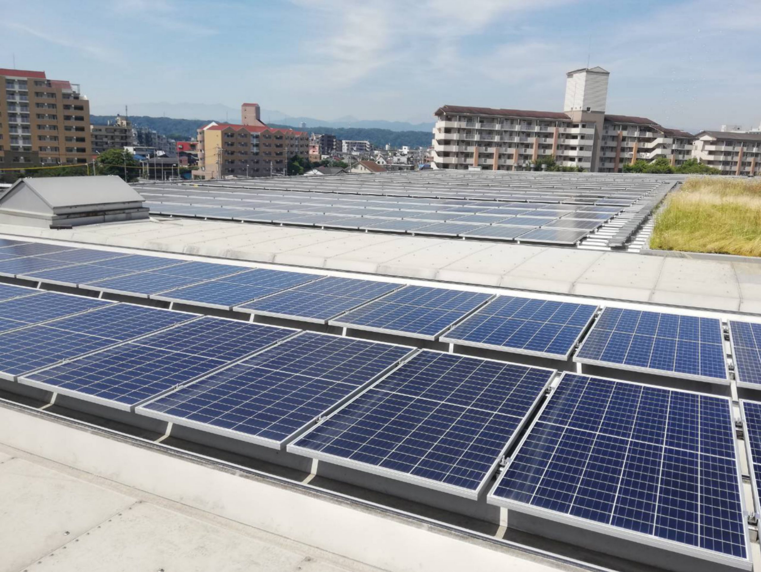 一面に広がるソーラーパネルの青色が綺麗です。
