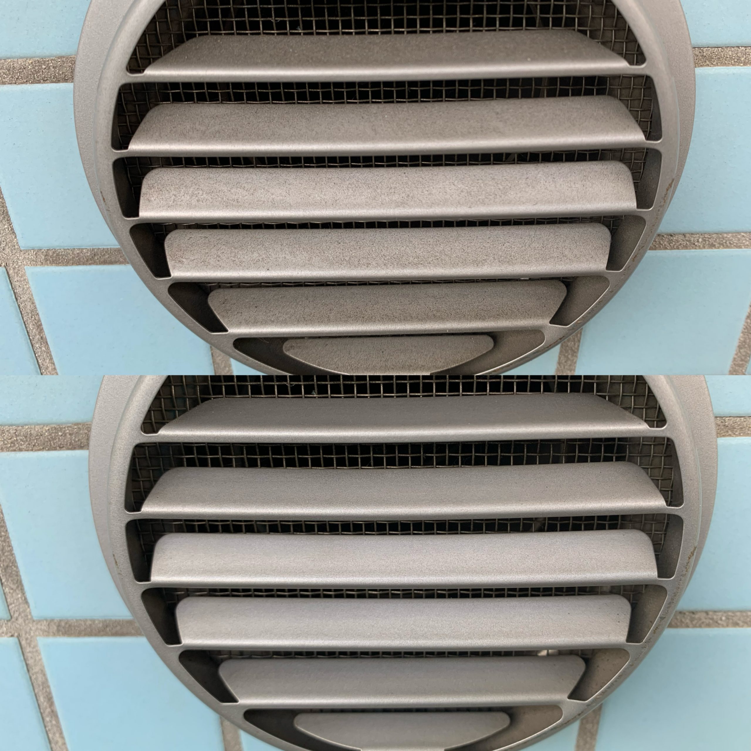 写真の上はよく見ると砂埃が溜まっている通気口と下は拭き上げ後の写真です。
