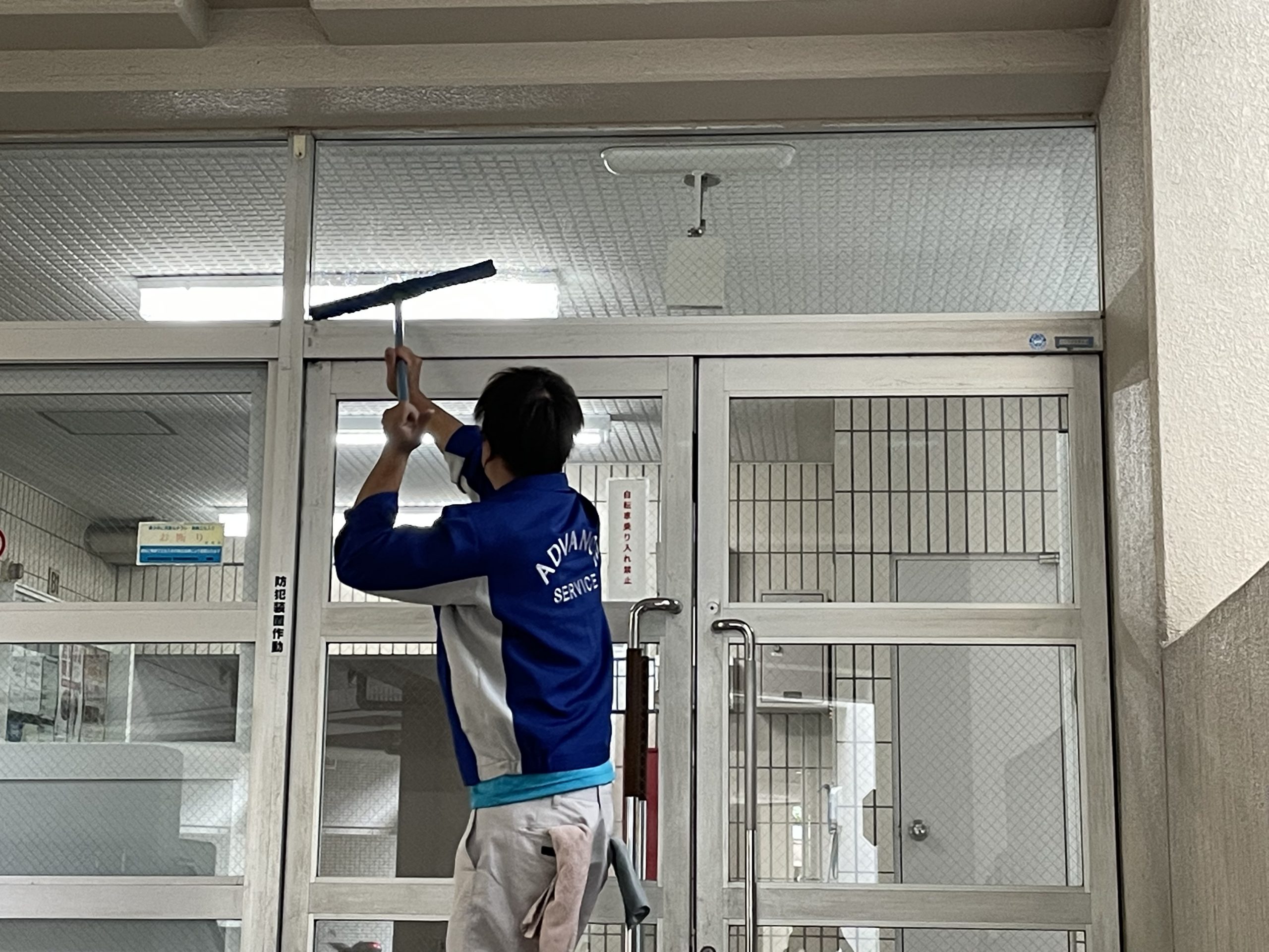 先日、マンションの定期清掃へ行きました!その際、ガラス扉、窓ガラスの清掃をしました!高いところは棒や脚立を駆使し、作業を行いました。清掃後のガラスはピカピカになり、お客様にも喜んでいただけるような仕上がりにできたと思います!