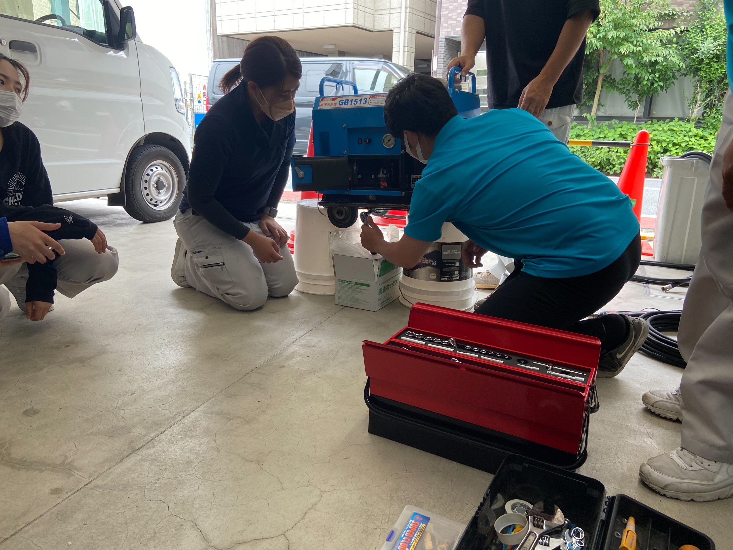 高圧洗浄を行うときは周りを見て、立ち回りが大事と知りました。角度を変えたりなどただ打つのではなく考えながら打つことを意識していこうと思いました。