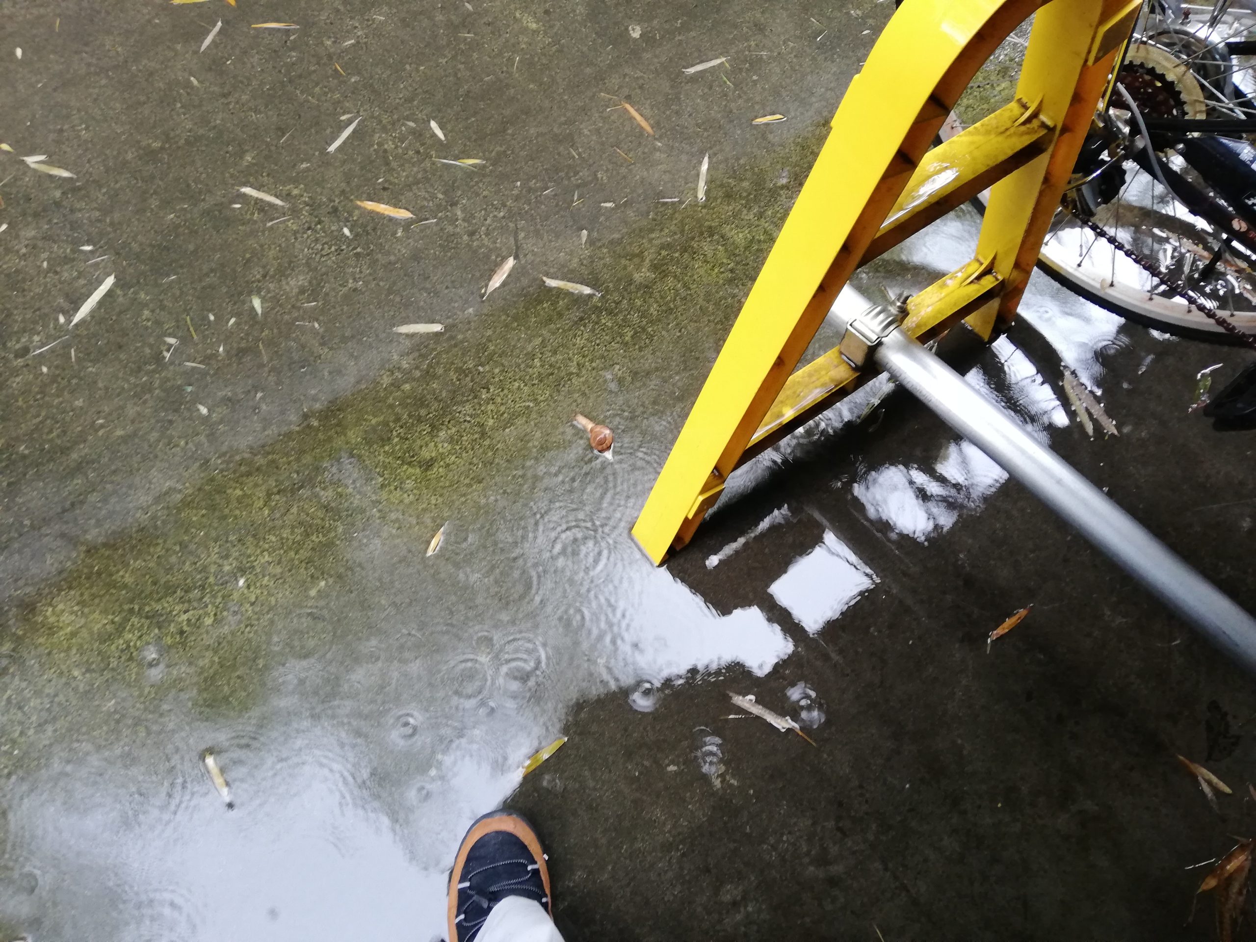 大雨の現場で🐌