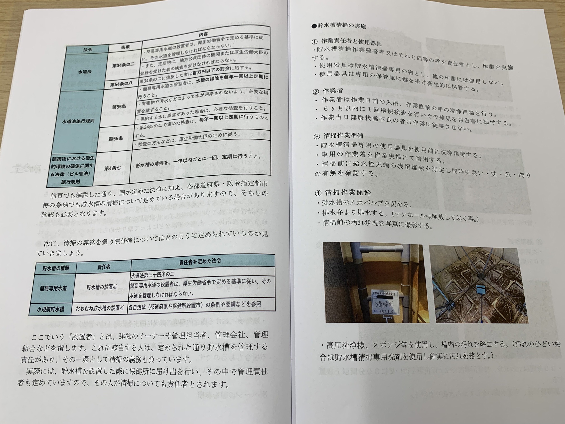今回は、土曜日の復習や排水管清掃の見積もりの作り方、貯水槽の清掃方法などについて学びました!