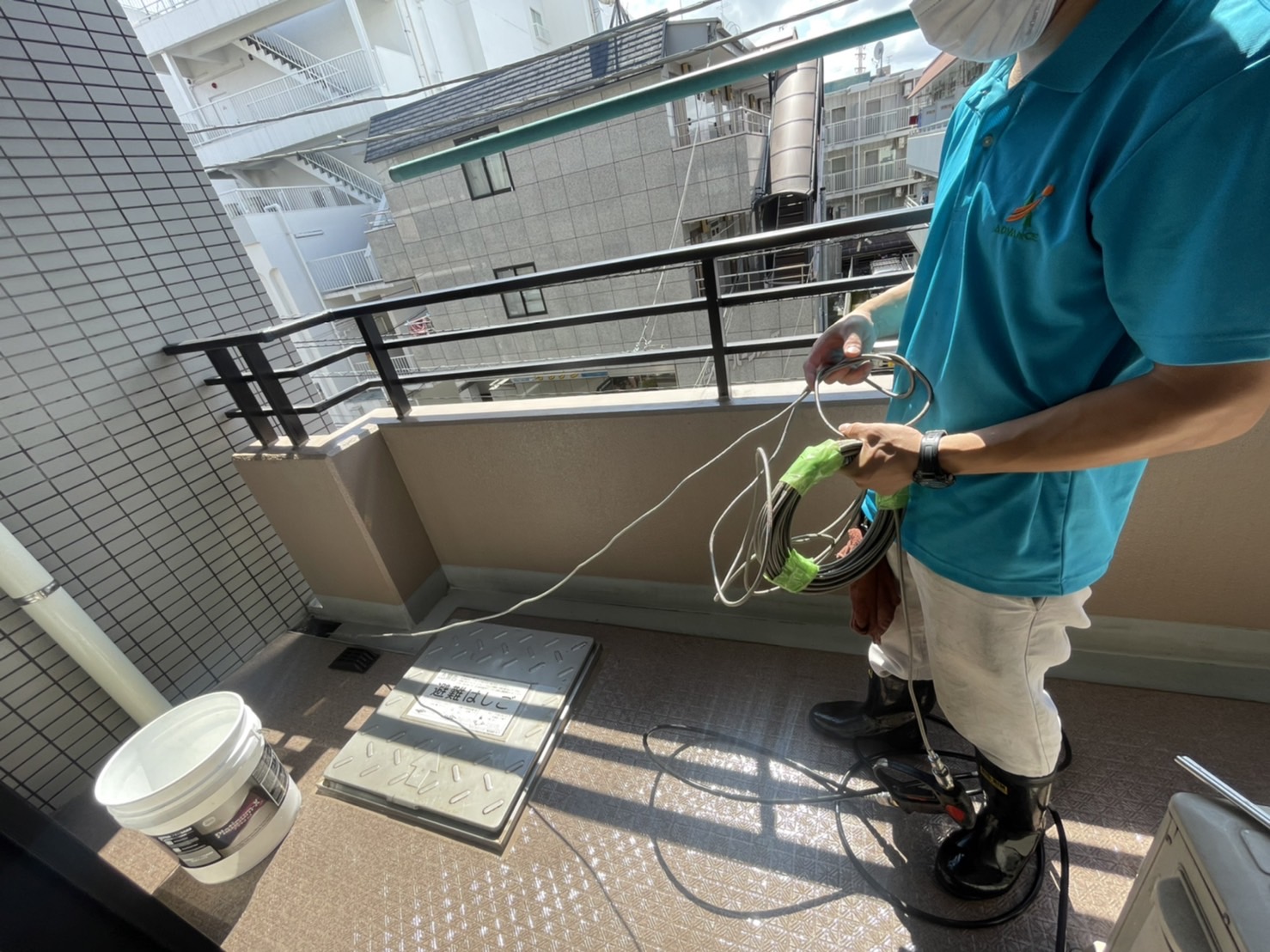 本日は排水管高圧洗浄とベランダ高圧洗浄の現場に行かせていただきました!