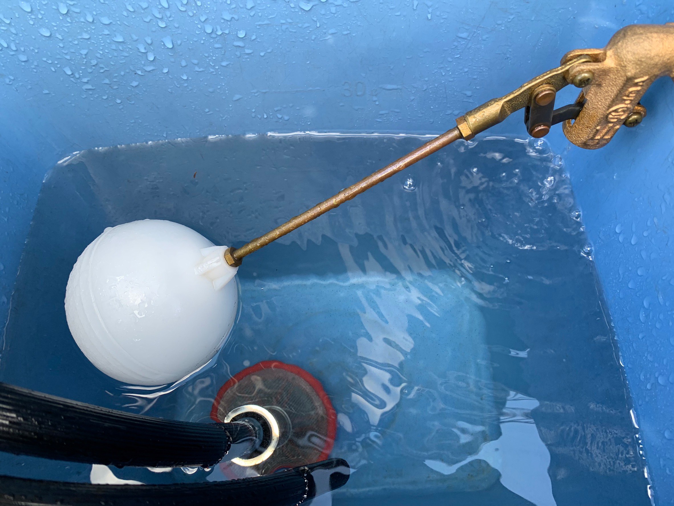 現場の写真を撮り忘れてしまったので、高圧洗浄機を使う上で欠かせない水を溜めるバケツ、ボールタップの写真を載せます、。