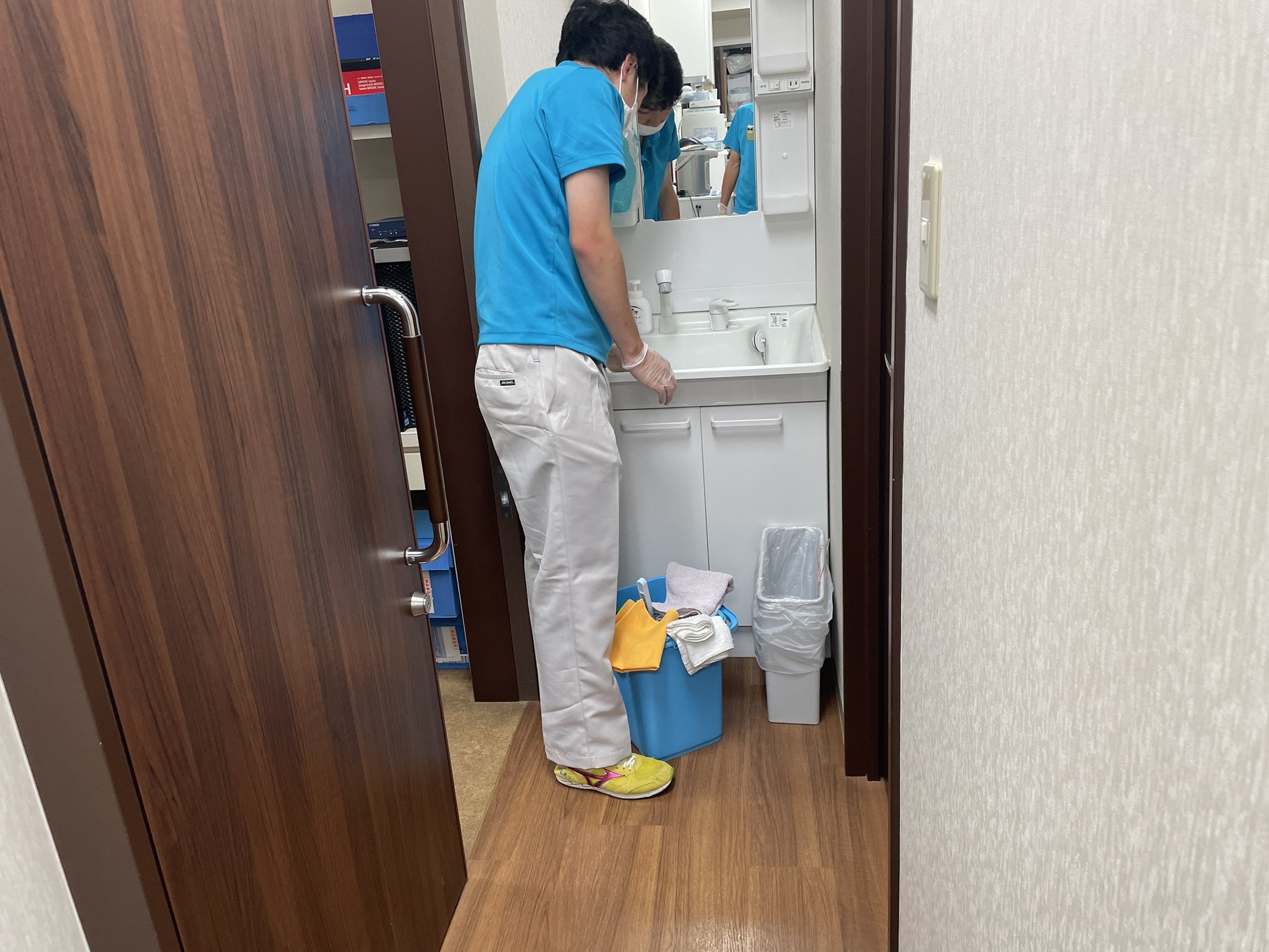 写真は洗面台の清掃をしているレクターです!