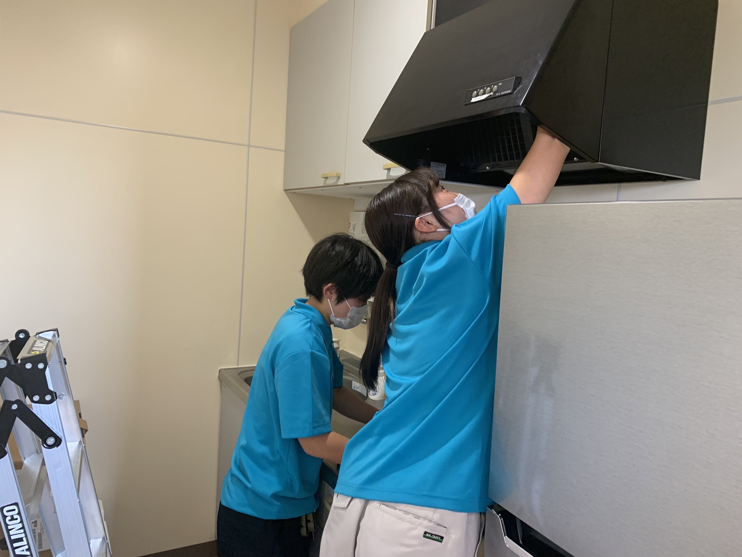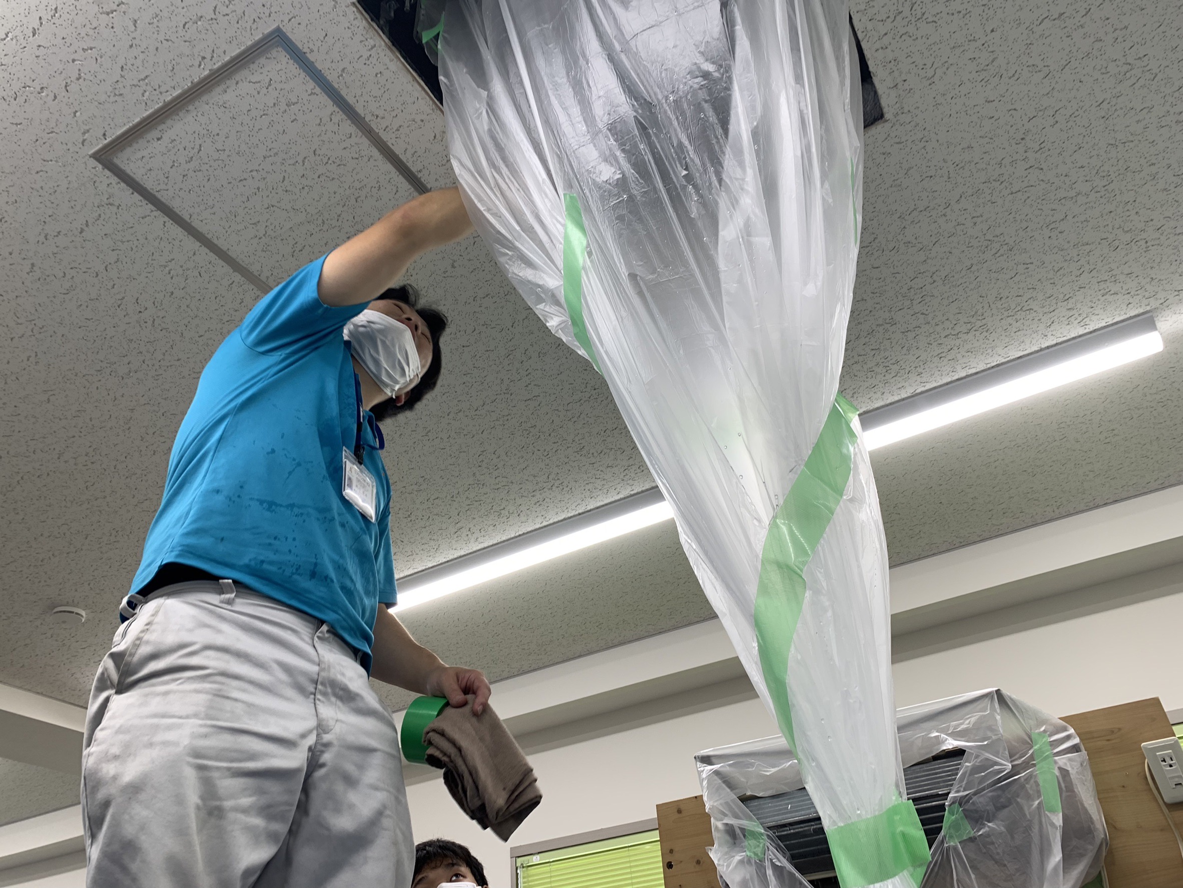 業務用エアコンの分解では、工夫できることを学び、床清掃ではスピード感と丁寧さを意識して取り組みました!