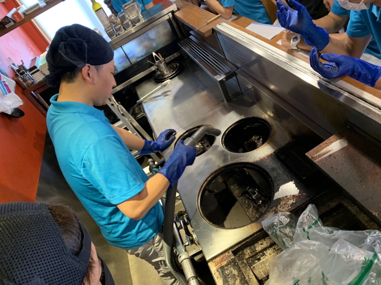 先日のJBAでは、実際に厨房へ伺い、そこで清掃の仕方を学びました。