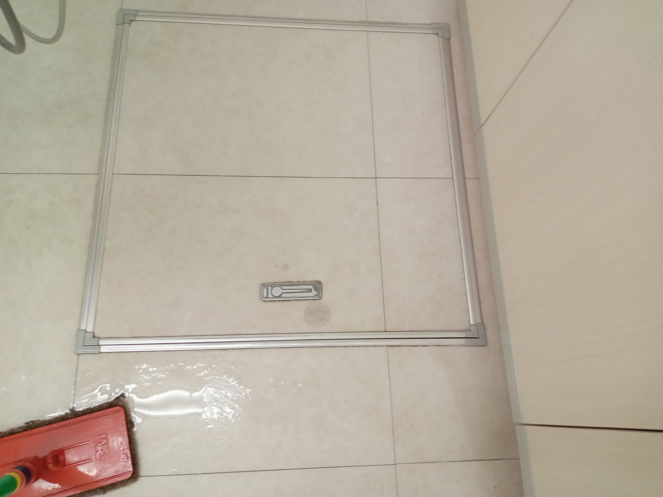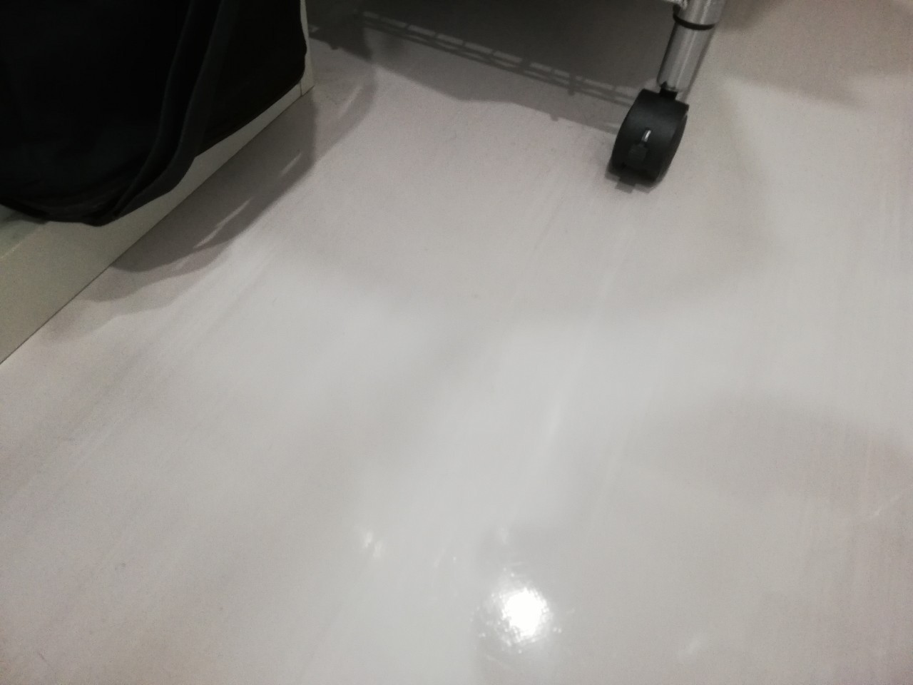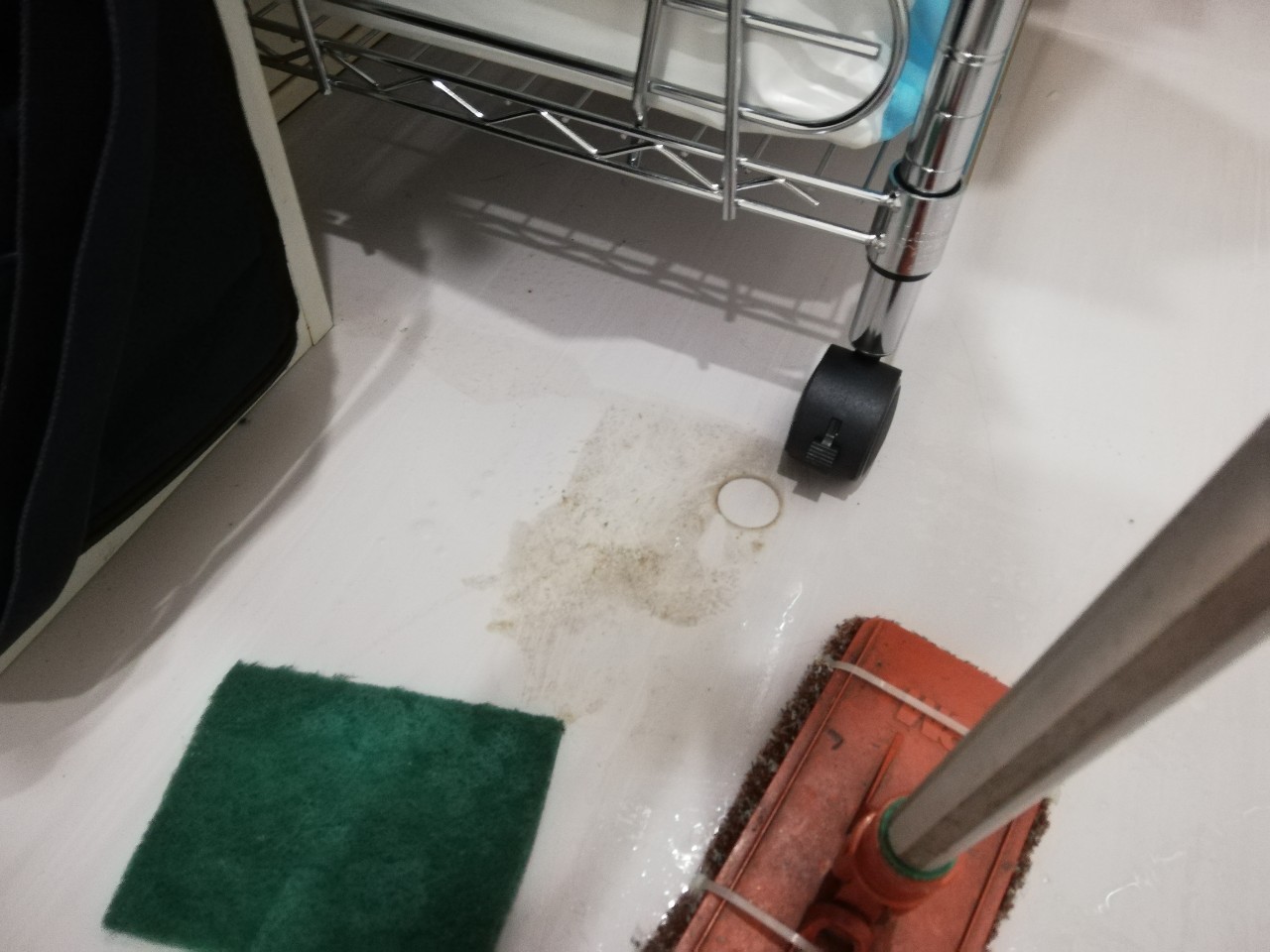 歯科医院様の現場に行くとよくあるのが液だれです。こちらは特に白い床の色ですので黒っぽく目立っております。