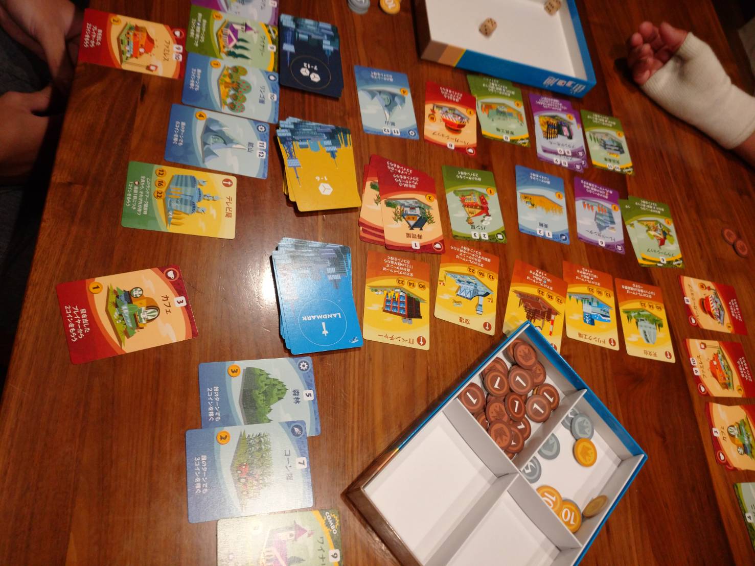 遊んでいたのは『街コロ通(2)』という自分の街を大きくしてランドマークになる大きな建物3つを如何に早く建てるかを競うゲームです。