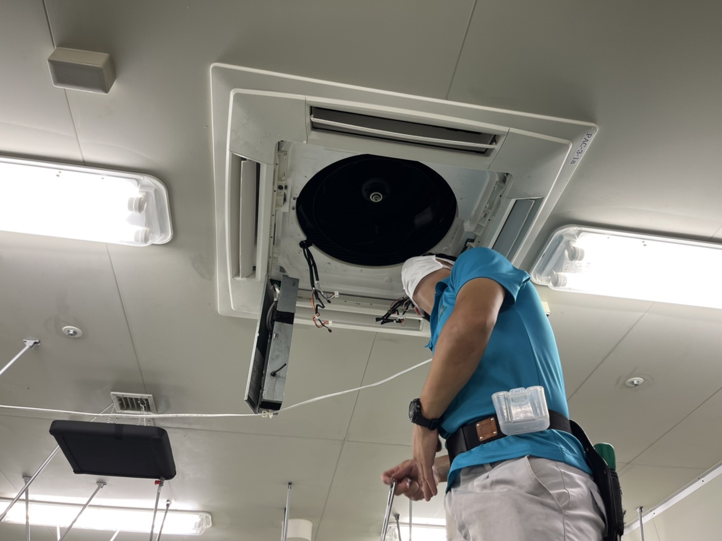 写真に写っているのはエアコン分解洗浄をしているセブンです!