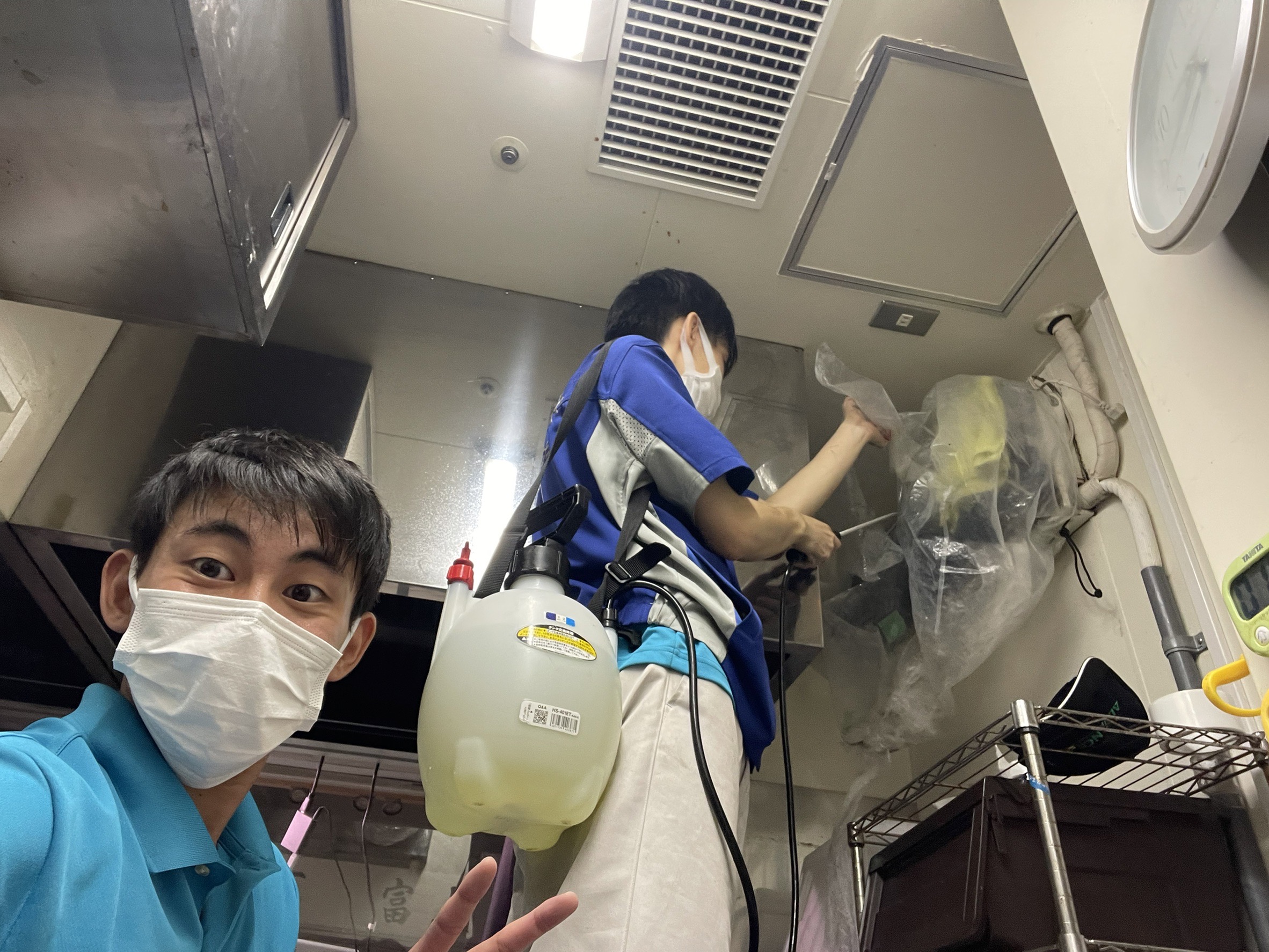 貯水槽内はかなり汚れていて、薬品をかけるとすぐに汚れが落ちていきました。吹きかけるだけで落ちるので薬品ってすごいなと改めて感じました。