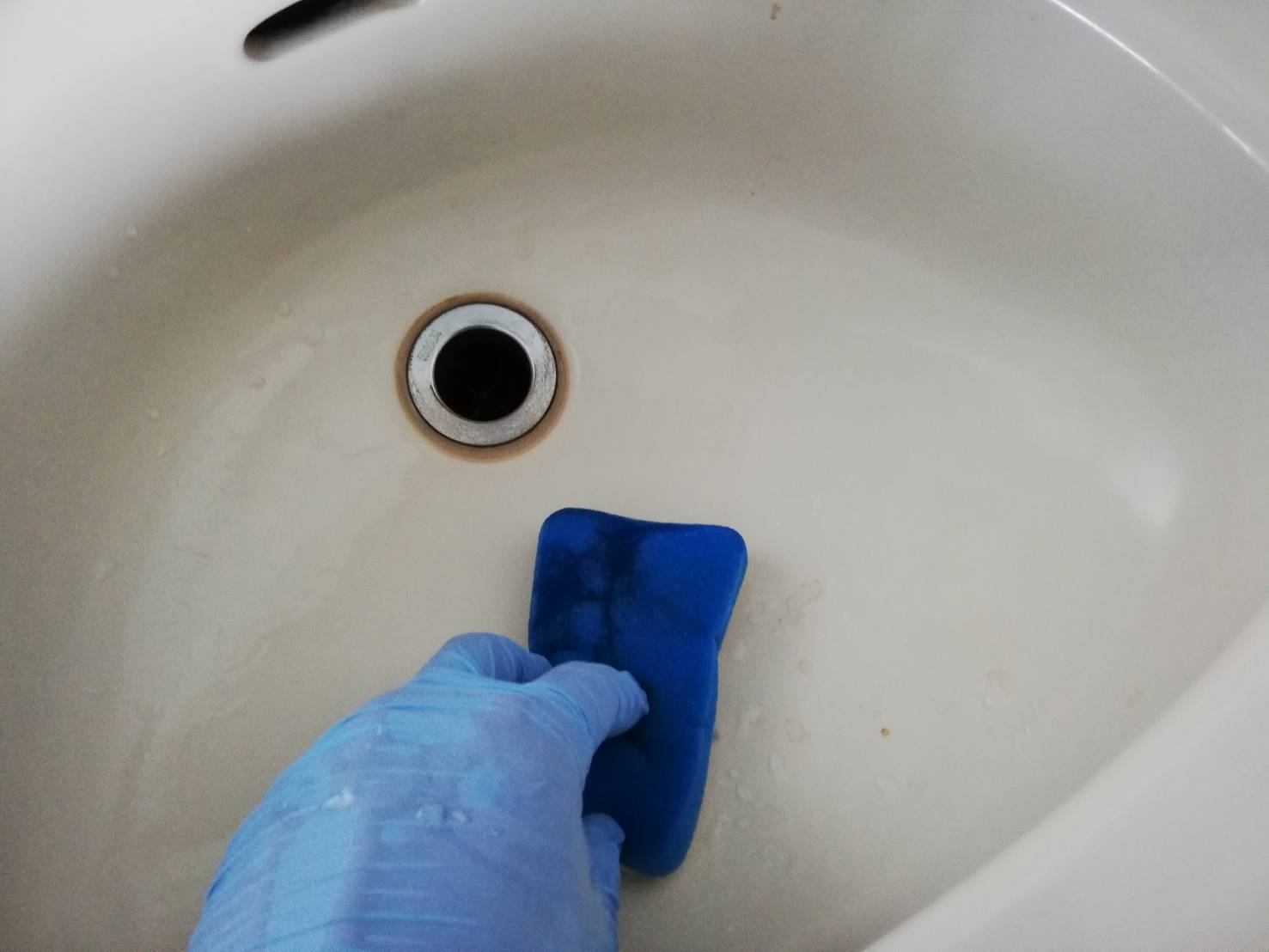 写真は洗面台清掃中の様子です!