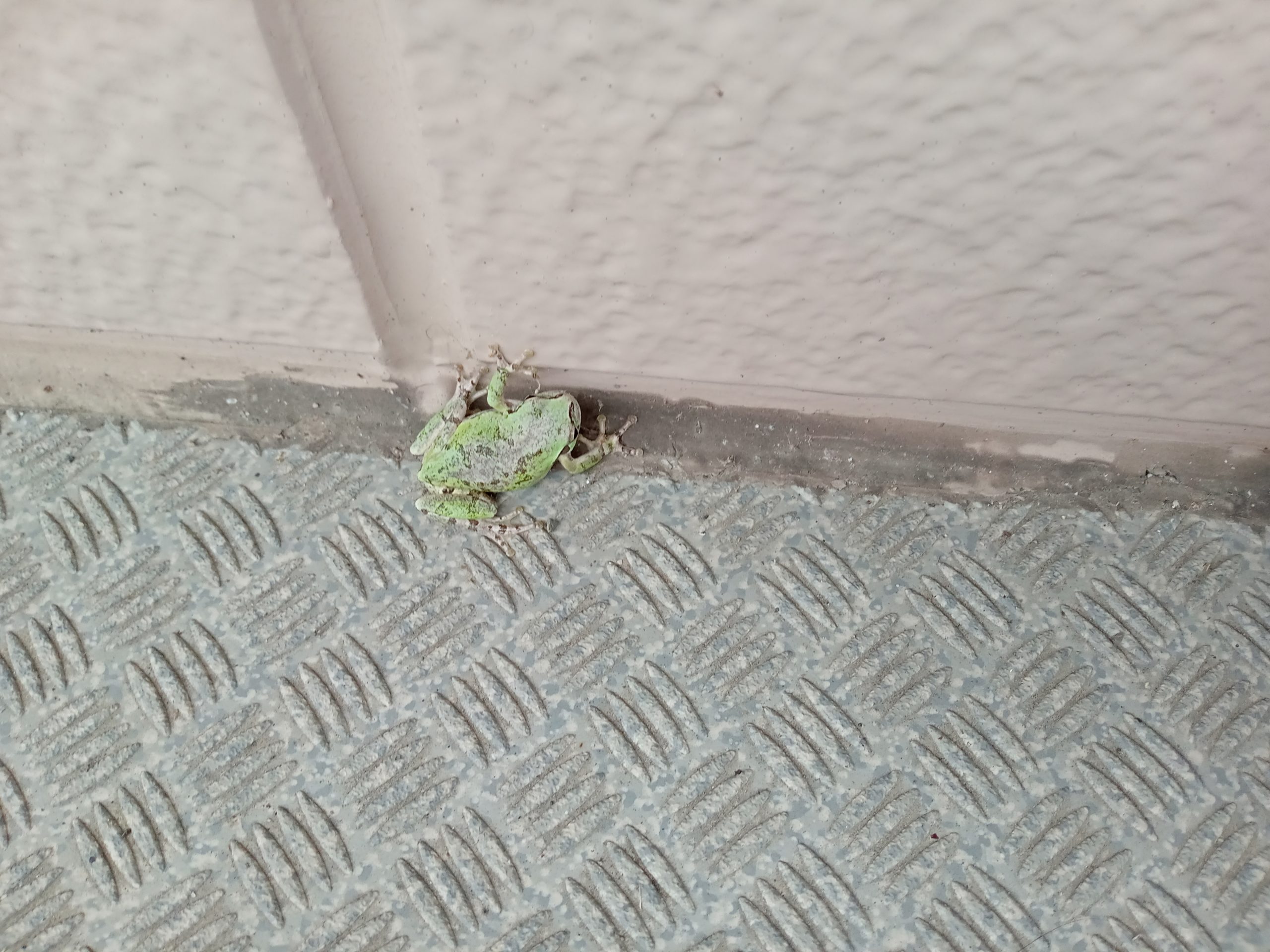 巡回清掃でいつも清掃に入らせていただいているマンションではカエルをよく見かけます。