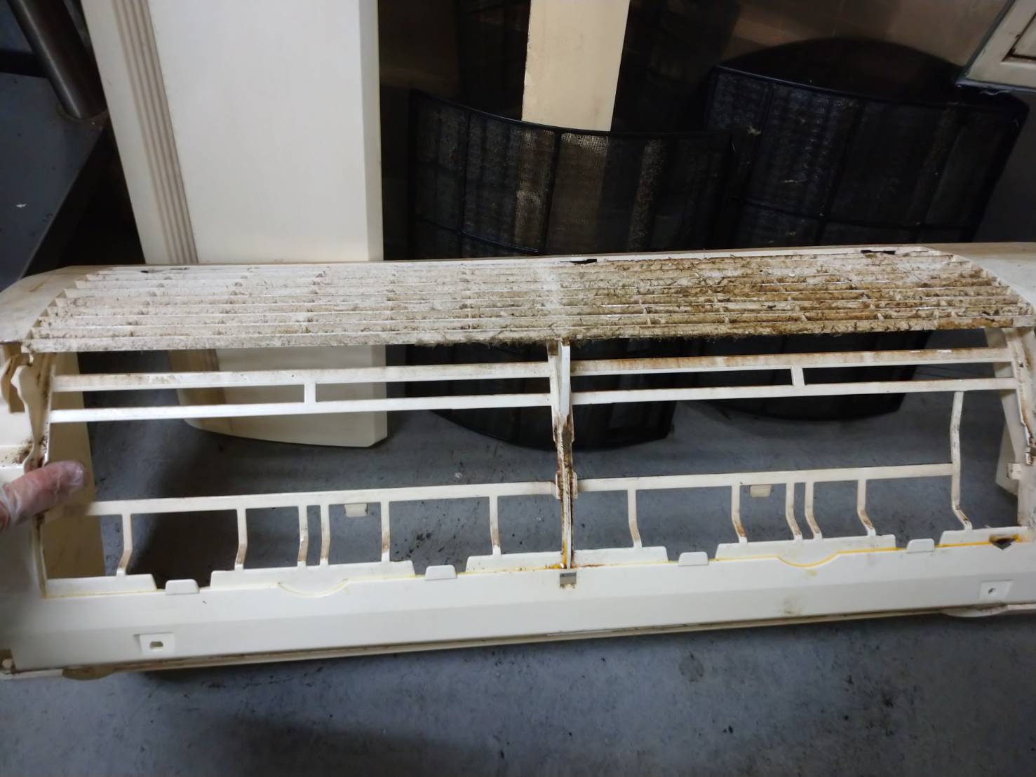 厨房のエアコンになると油にカビや埃の付着が起こるのでかなり頑固な汚れになるので苦戦しました……