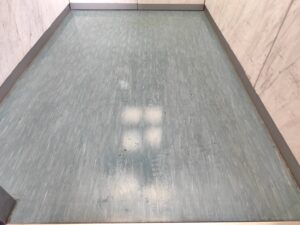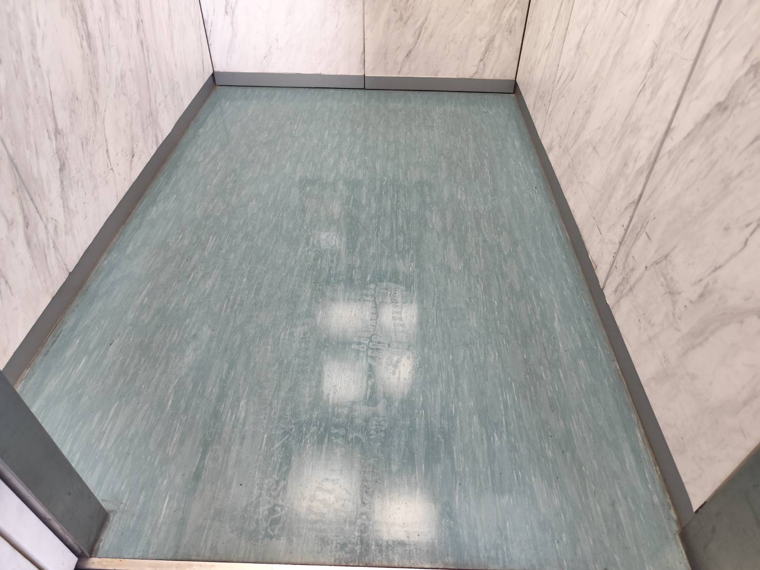 先日マンションの日常清掃の際、EV内の床面が汚れていたので清掃しました。