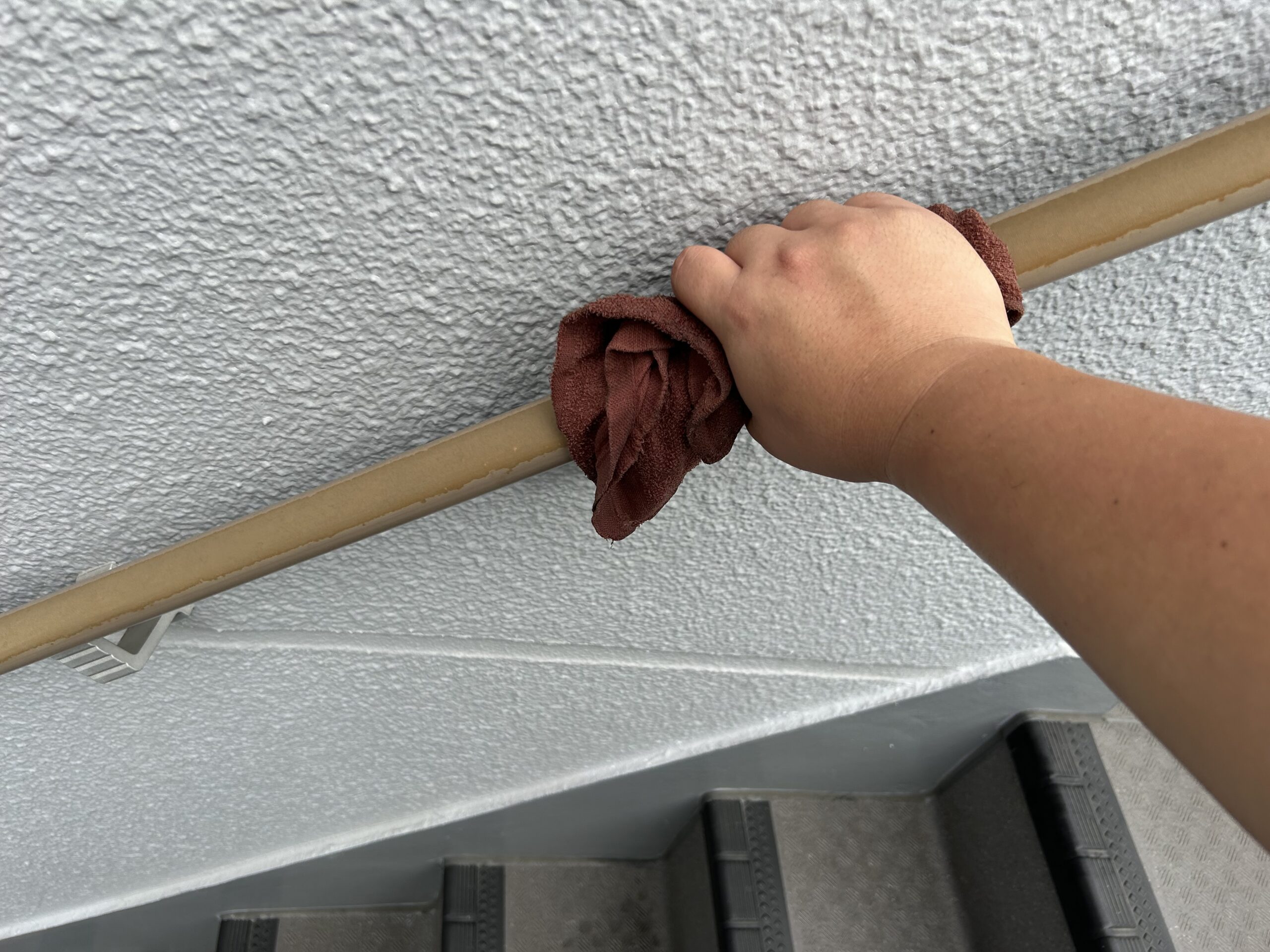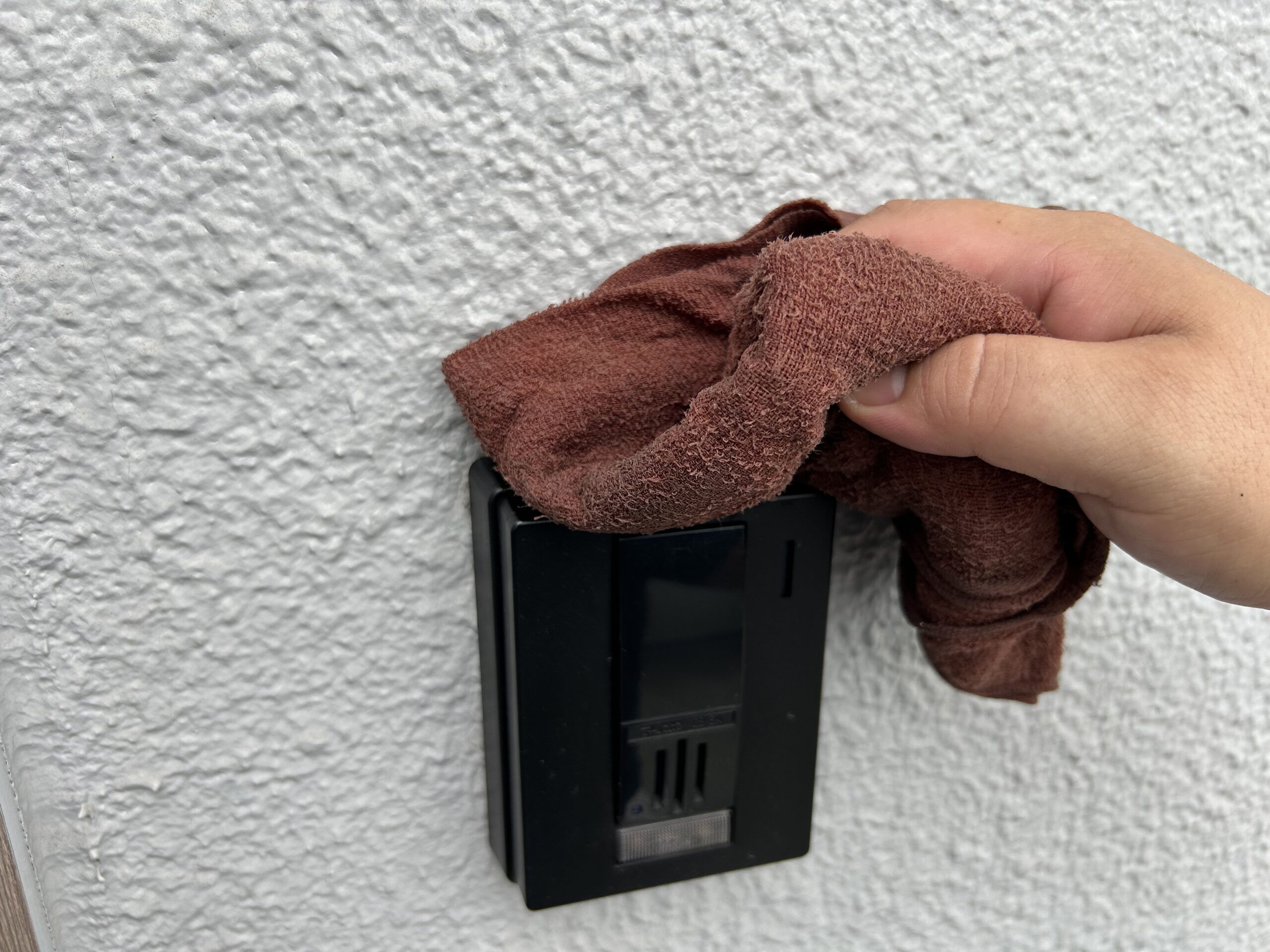 インターホンの上や手すりなどは埃や汚れが溜まりやすいのでしっかりと拭きあげをして汚れをとっていきます!