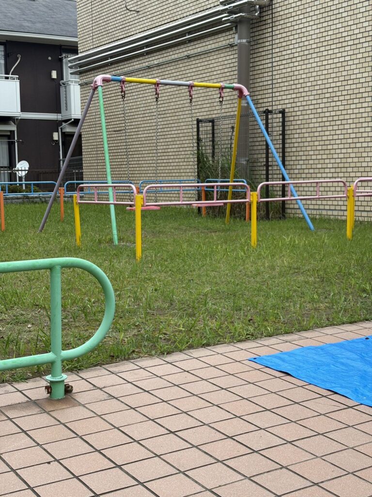 仕事中に公園の可愛いブランコを見つけました!笑なんかクレヨンしんちゃんっぽくて可愛いですね^^