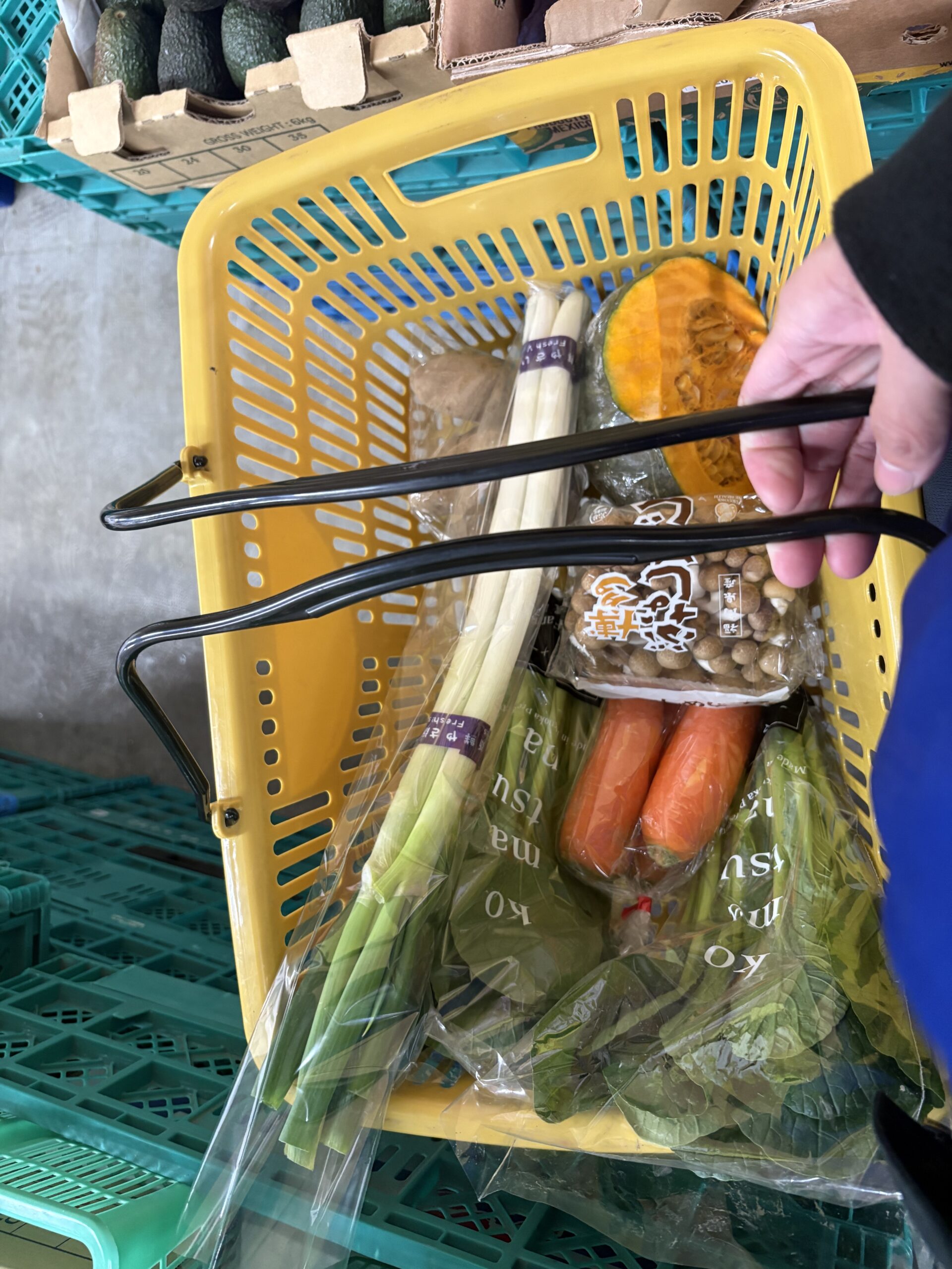良い野菜が安かったりして、ジンはテンション爆上がりでカゴの中にホイホイ入れちゃいます(笑)