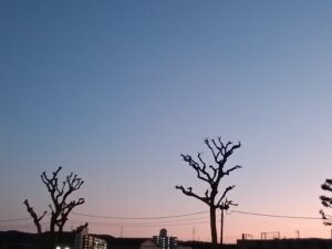 真っ赤な夕焼けも目を引きつけられますが、淡いグラデーションの空も綺麗です。