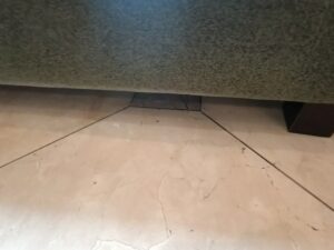 ロビーは様々な方が利用されるので汚れやすく、この日は死角になりやすいソファの下に飲みこぼしが。