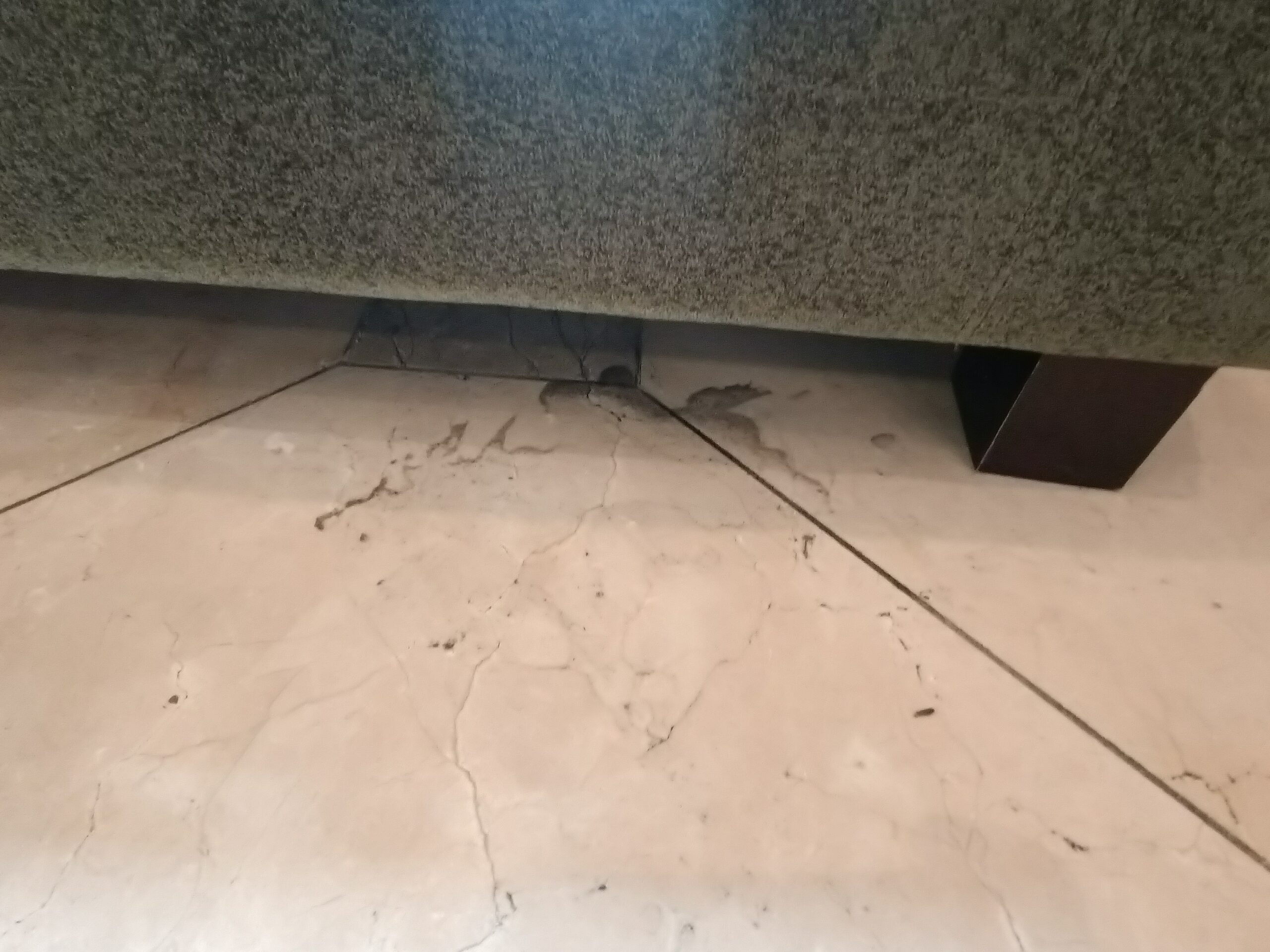 ロビーは様々な方が利用されるので汚れやすく、この日は死角になりやすいソファの下に飲みこぼしが。