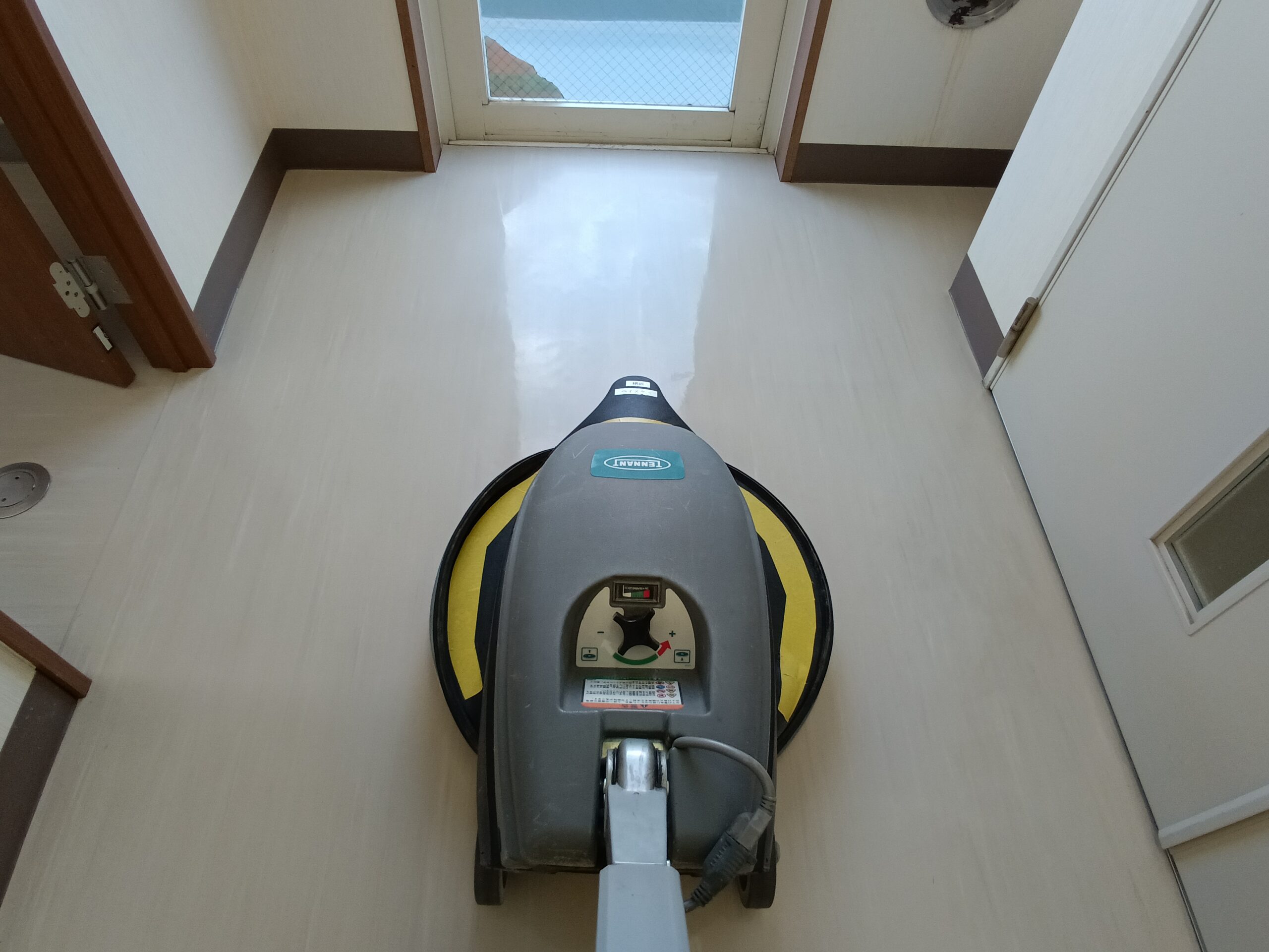 定期清掃で使う機材は大きなものが多いので、幅が限られた廊下等での作業は注意が必要になります。