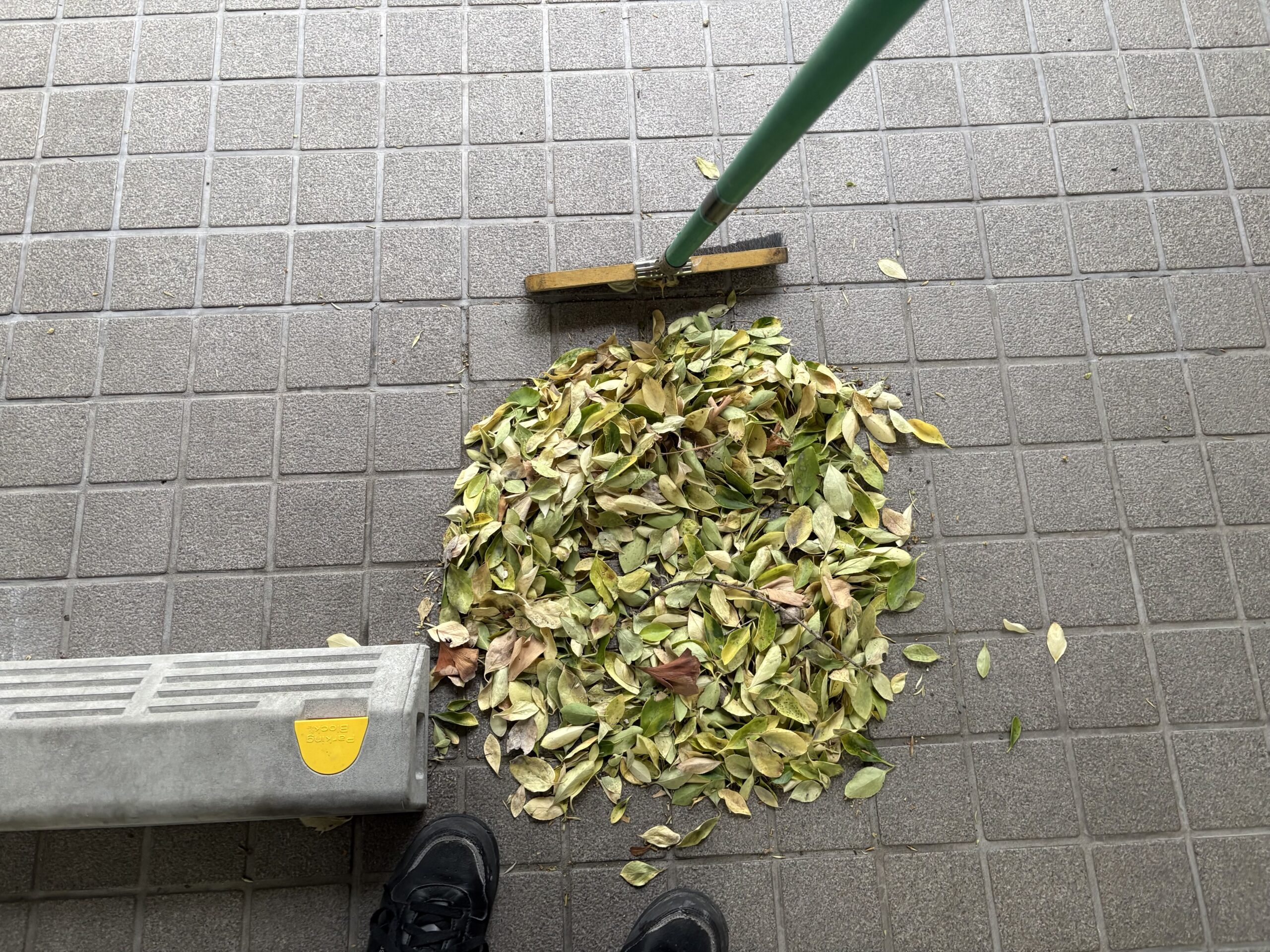 掃き掃除するとこんなにもどっさり落ち葉が🍂