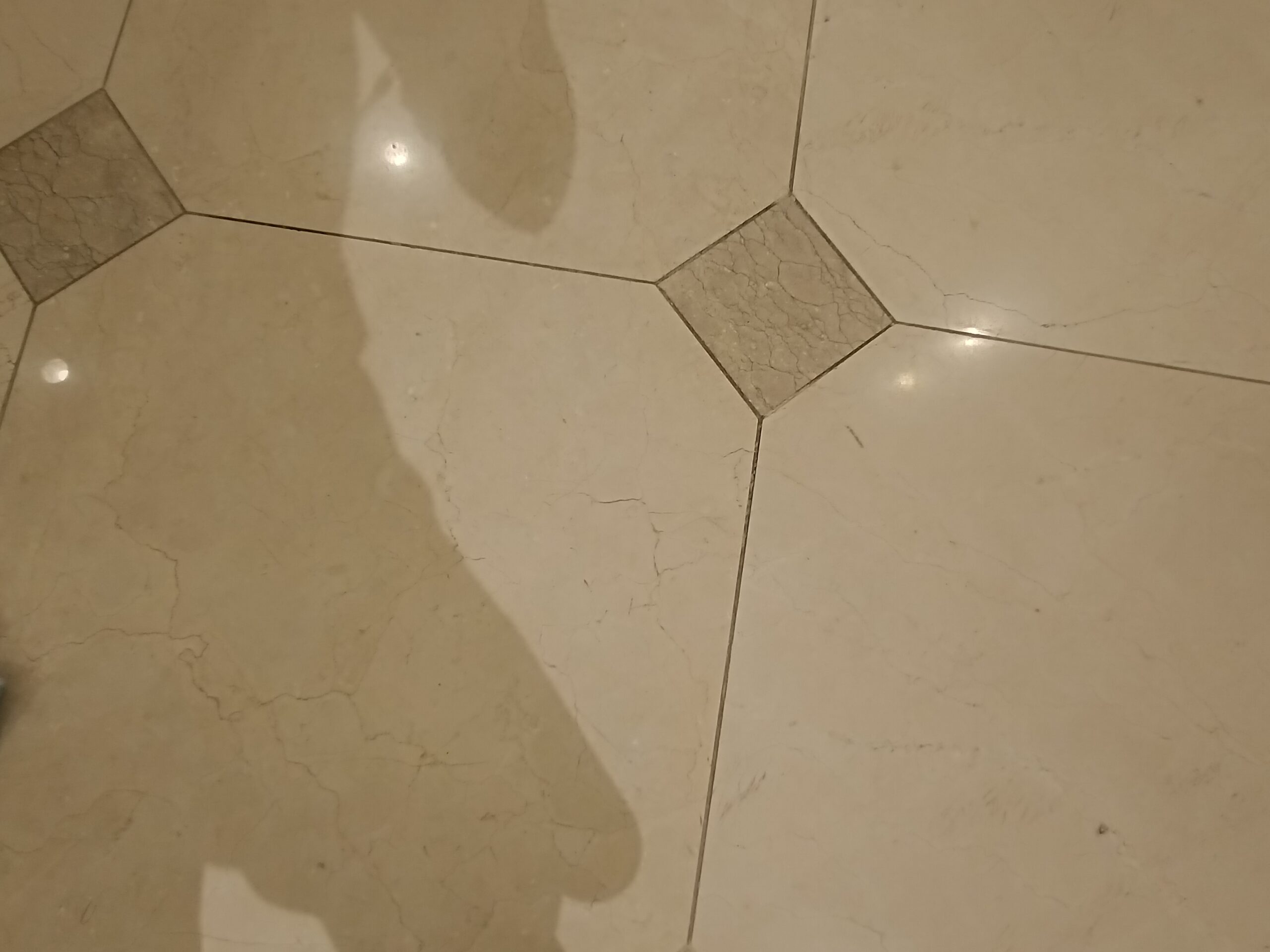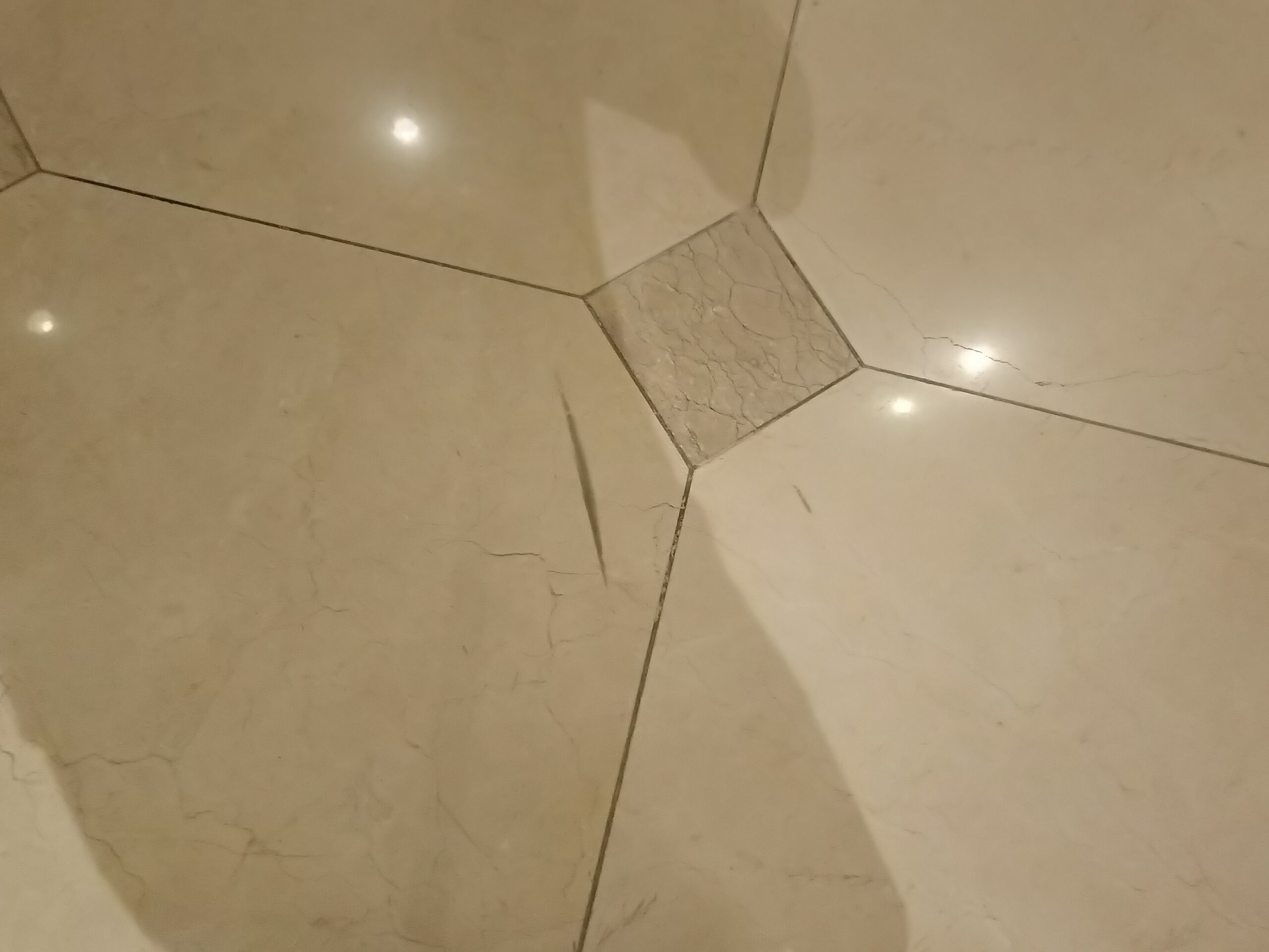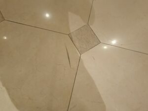 多くの方が行き交うロビーにはヒールマークが付着します。