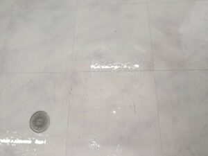 広いフロアはポリッシャーで一気に洗浄しますが、