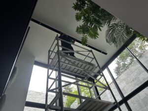 吹き抜けになっているところは天井が高いので、ローリングタワーという足場を使って作業を行いました。