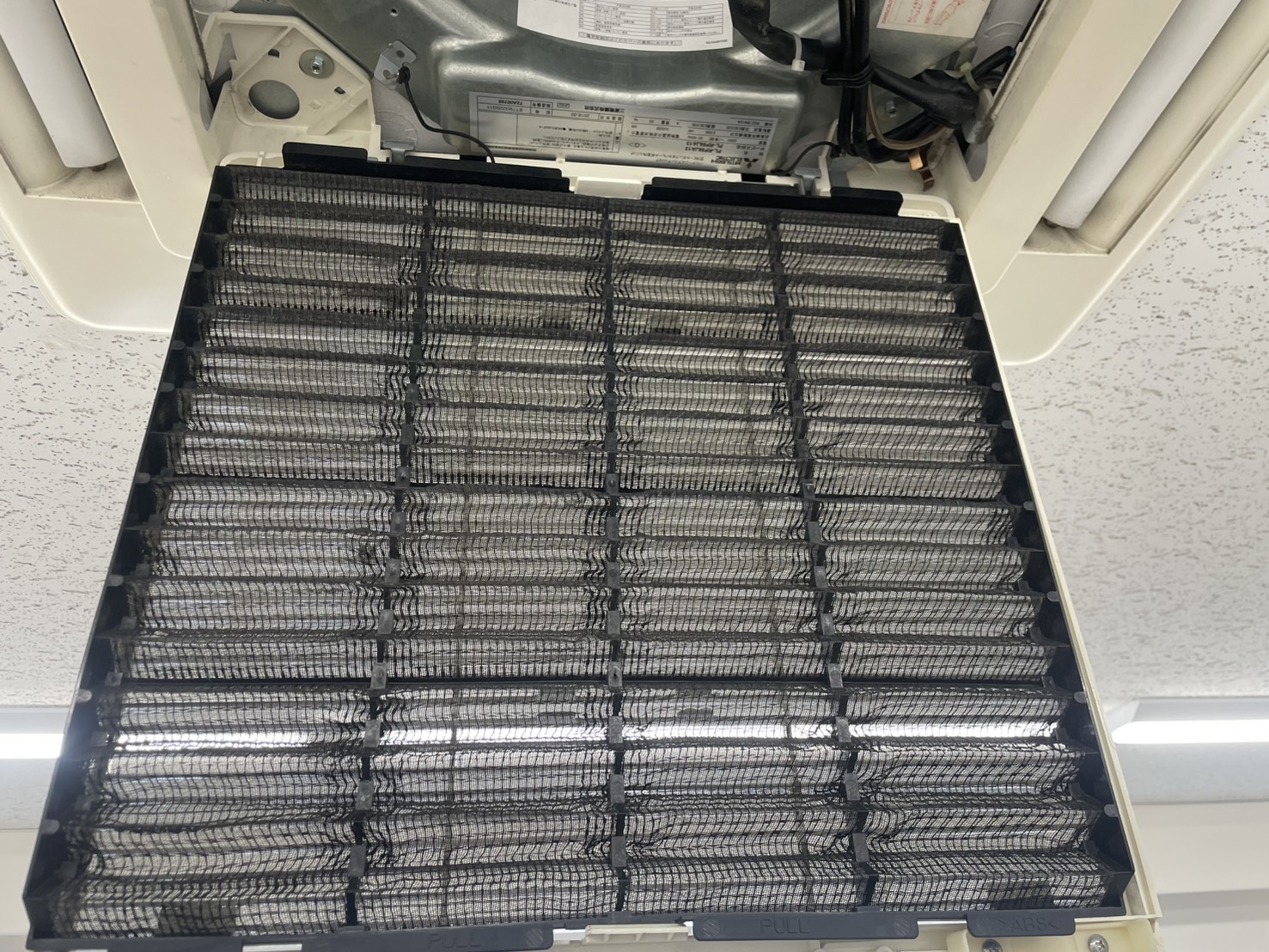 事務所のエアコンフィルターを掃除しました!