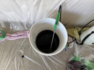 ワックスを綺麗に塗る為、階段を一段一段丁寧に磨きました!