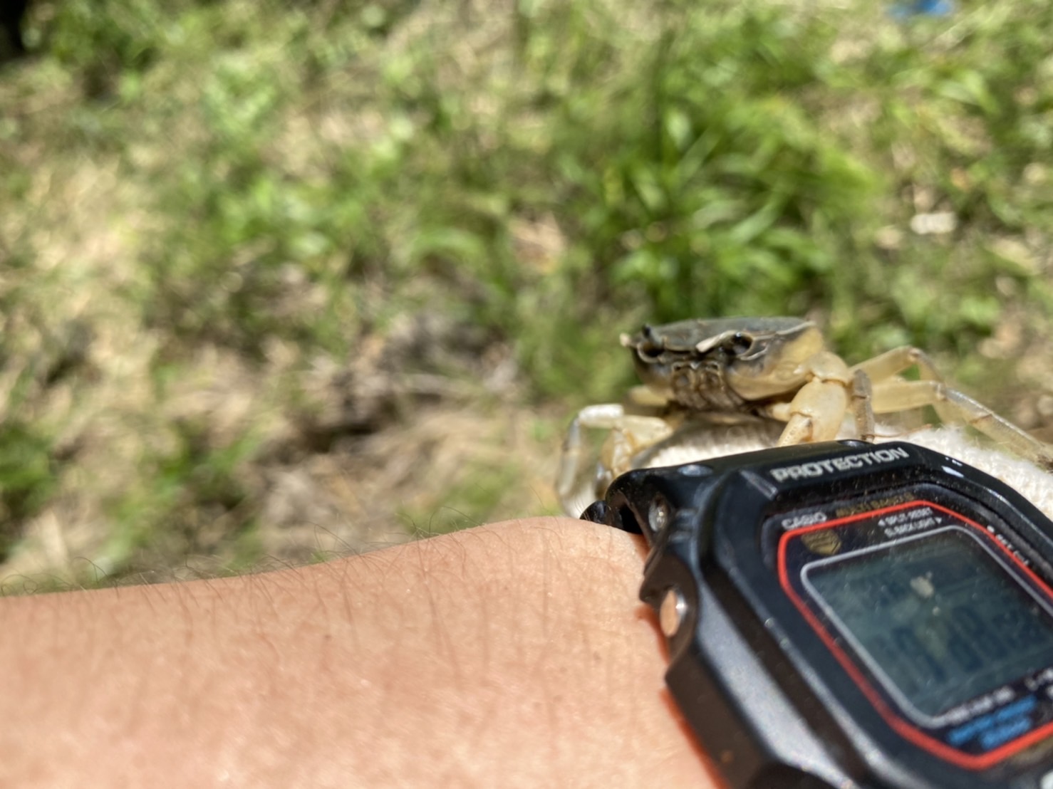 先日除草作業をしていたらカニが現れました!