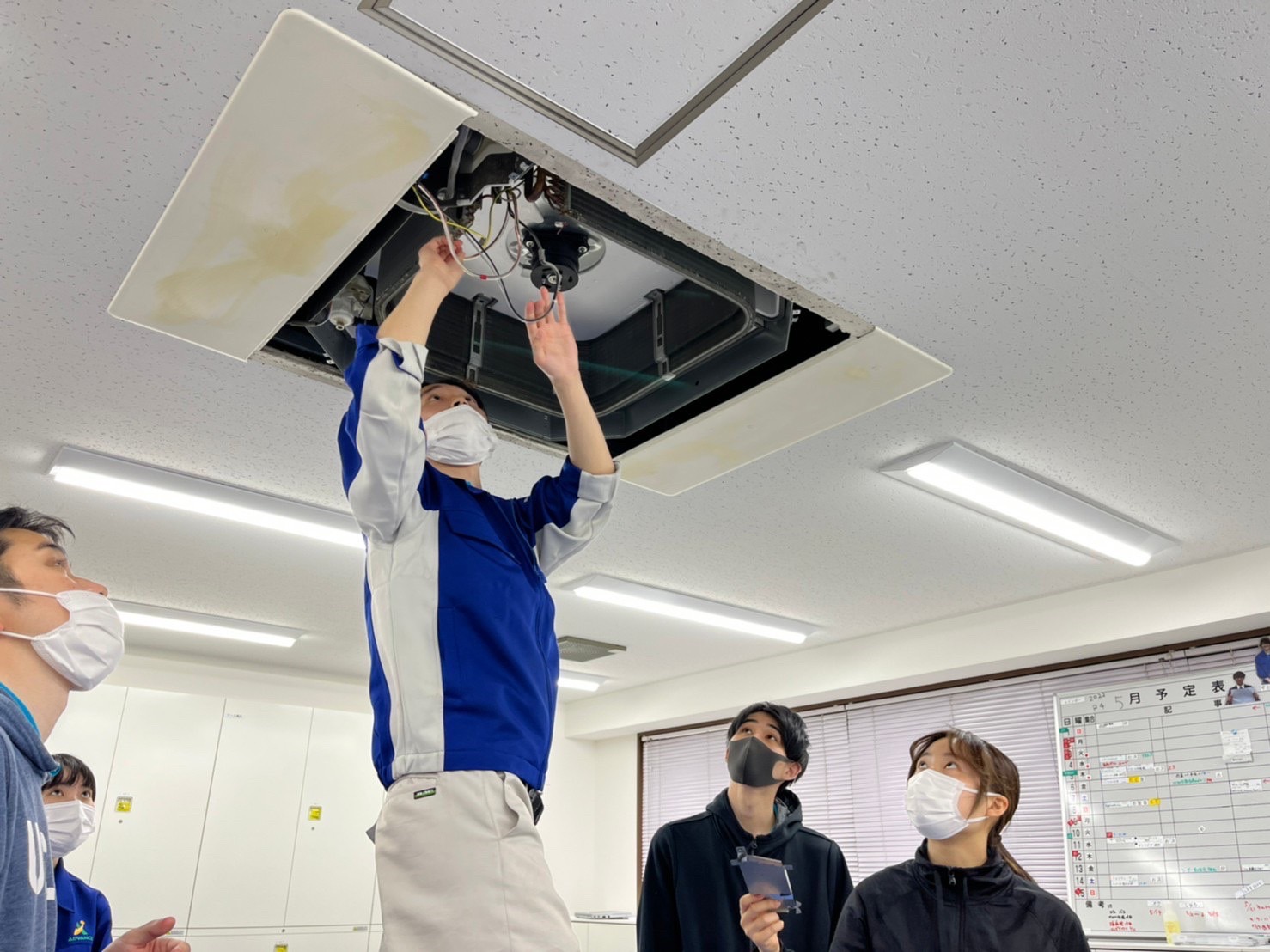 今日の研修で業務用エアコン分解を行いました。この研修は二回目で、前回の研修よりも作業スピードが上がっていたので嬉しかったです。これからエアコンの現場が増えてくると思うので、現場でもしっかりできるように頑張りたいです。