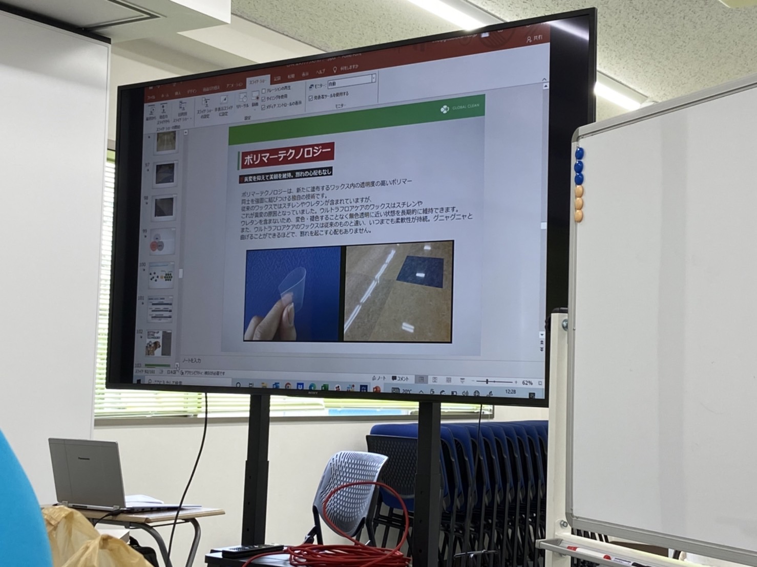先日の研修では、剥離作業とワックス作業について学びました。