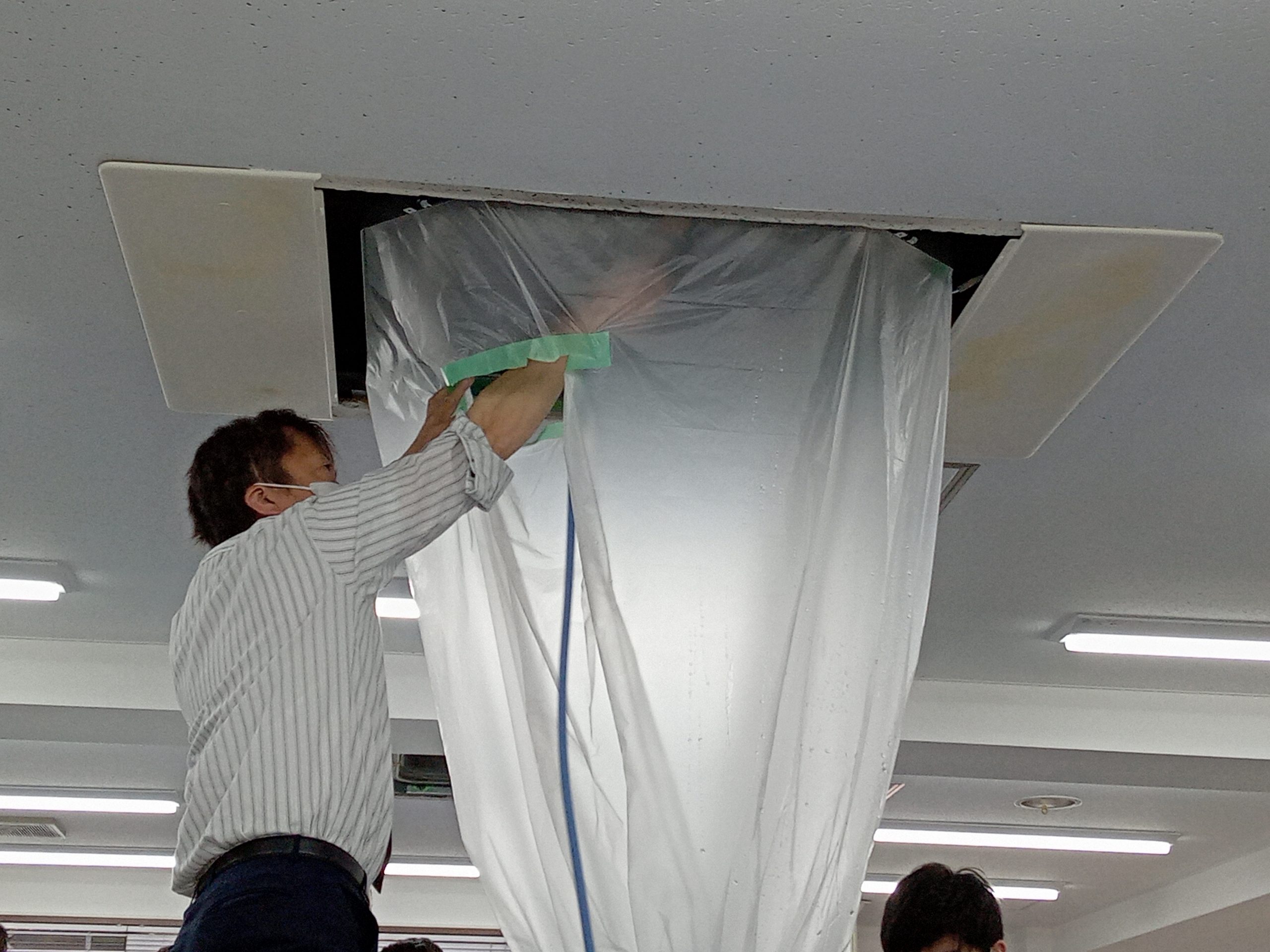 本日は業務用エアコンの洗浄をしました!洗浄をする際の気をつけるポイントや配線の貼り付け方などを教わりました。昨日教わった分解、組み立に加えて洗浄もできるように頑張ります!