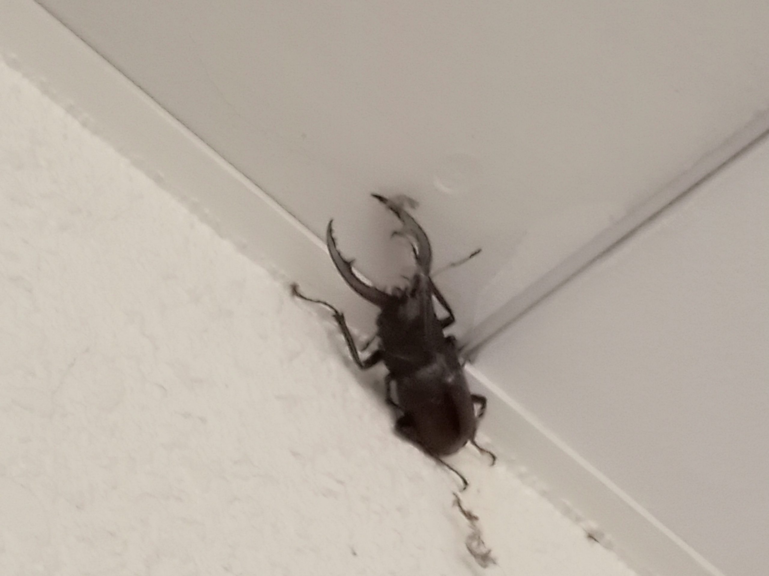 本日は、巡回清掃に行きました。掃き掃除をしていたところ、クワガタの死骸ありこんなとこにクワガタいるのか!?と驚き、天井を見たら一匹だけ生きているクワガタがいました!久しぶりにクワガタをみたのですがかっこよかったです(*^^*)