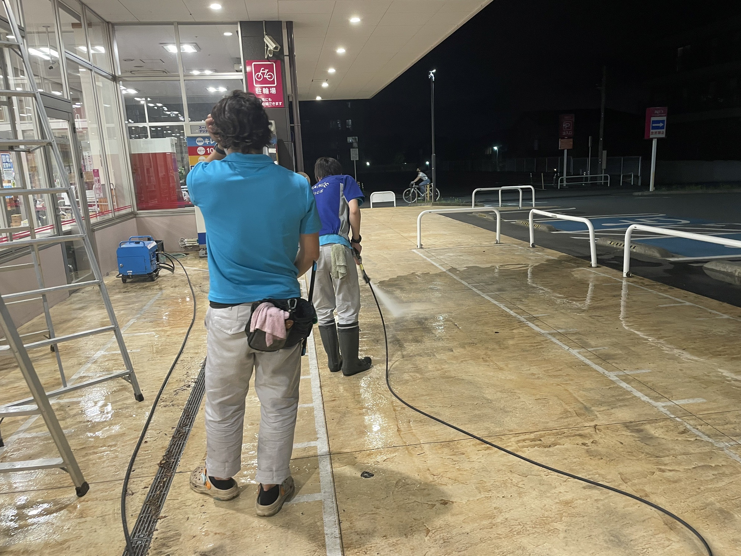 先日、夜現場で高圧洗浄を行いました!