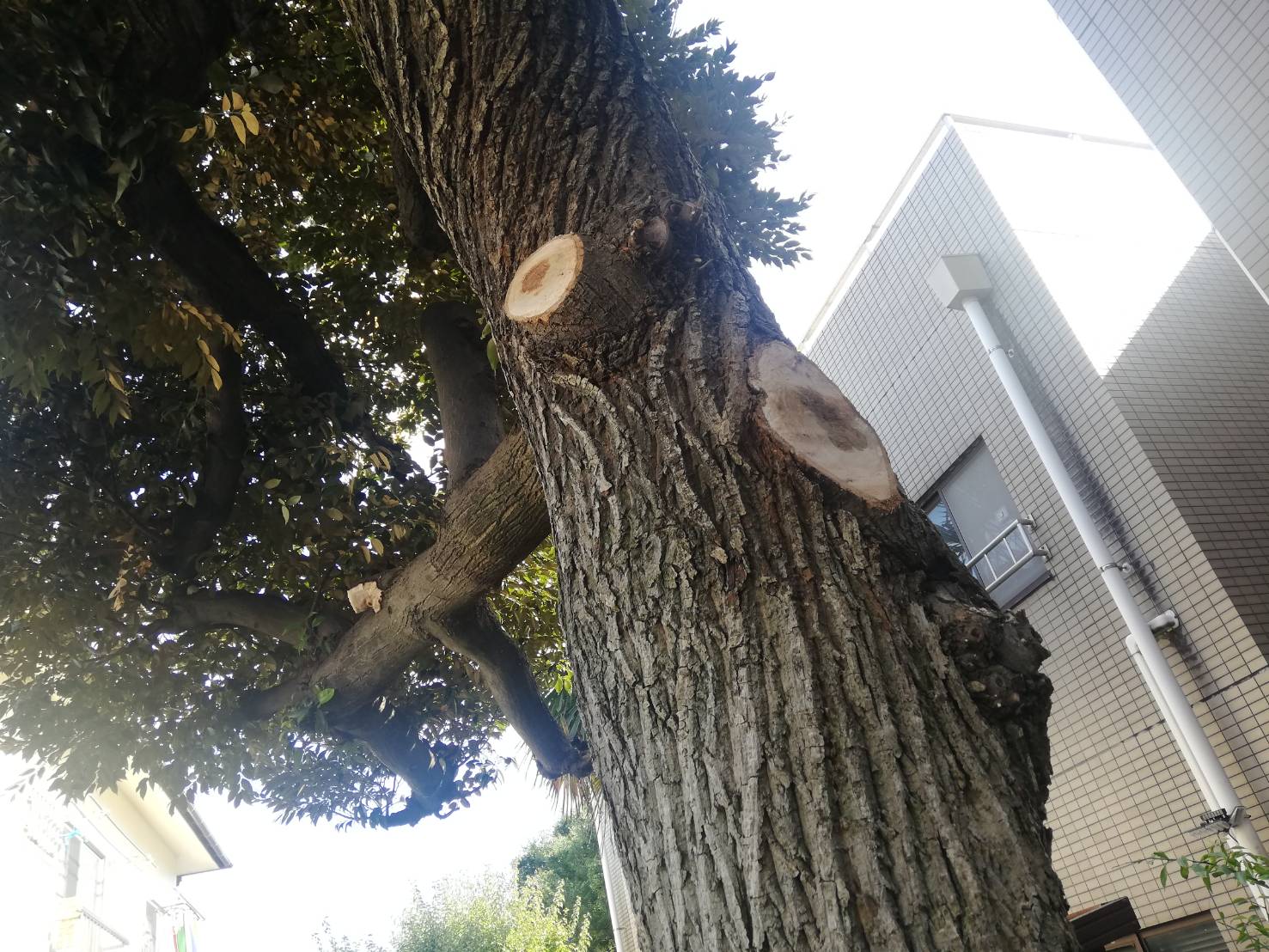 当日の私のメインとなった作業がこちら。コブになっている木の幹を丸ごと切り落とすという作業です!