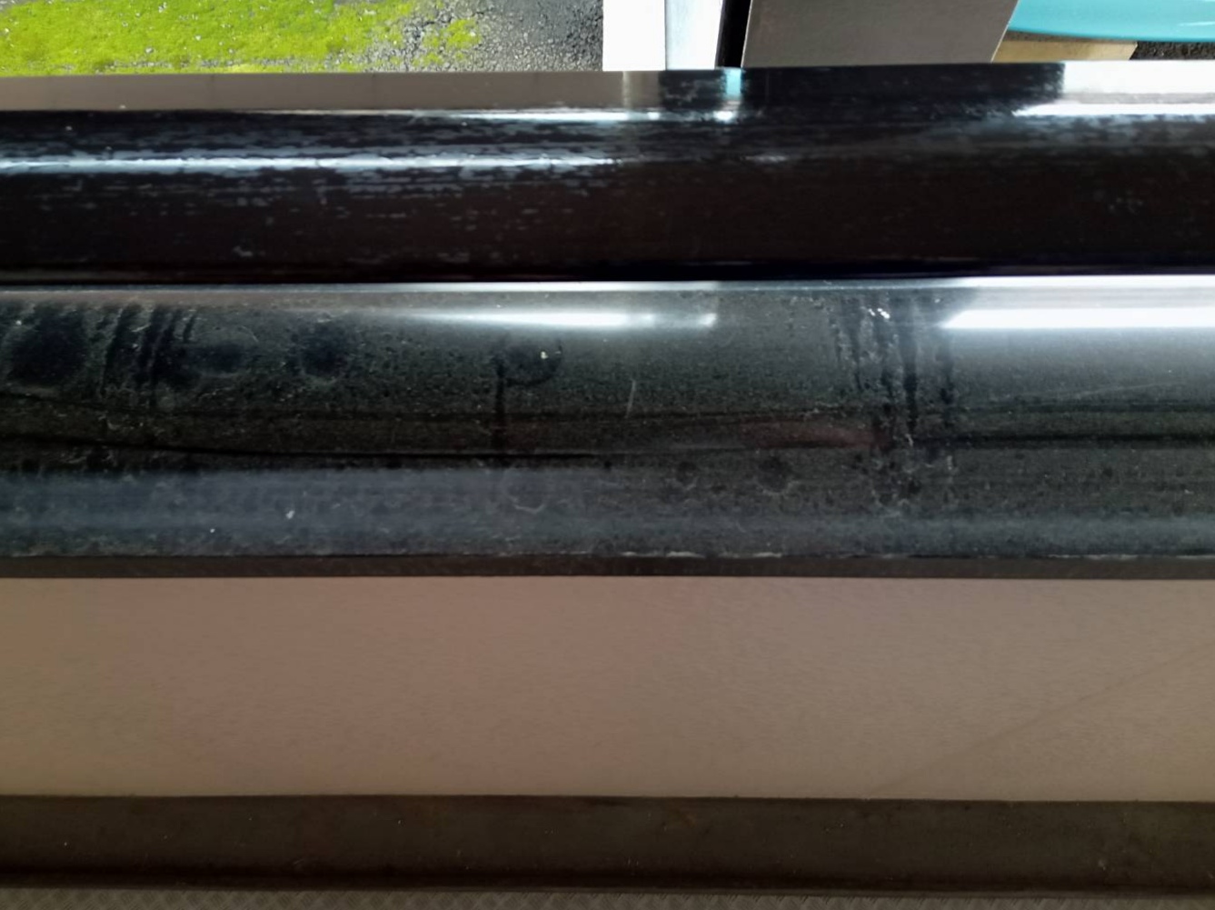 最近雨が多かったせいか、手すりについていた砂ぼこりが固まっていました…